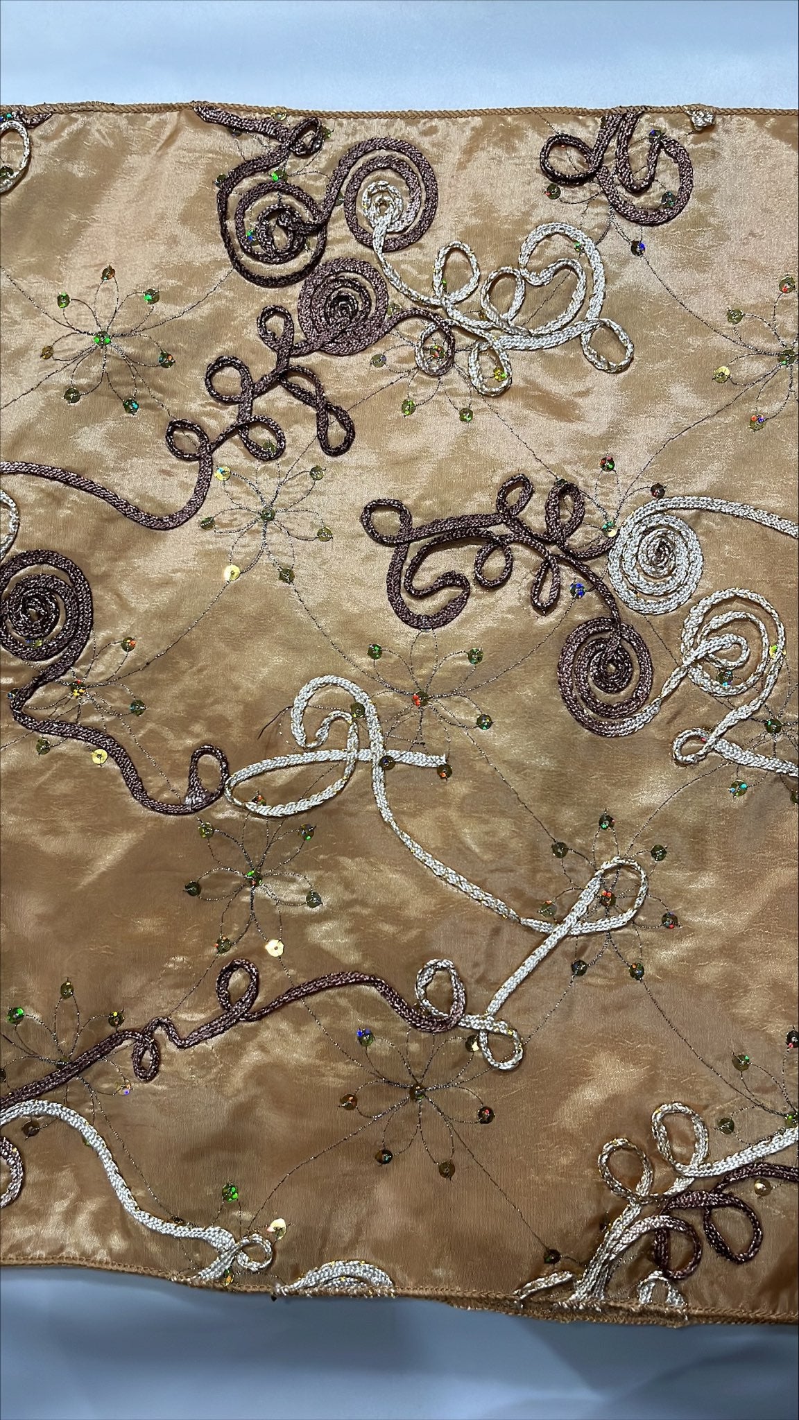 8pcs - Ribbon Taffeta Sequins Table Runner 14"x108" - Gold/Brown