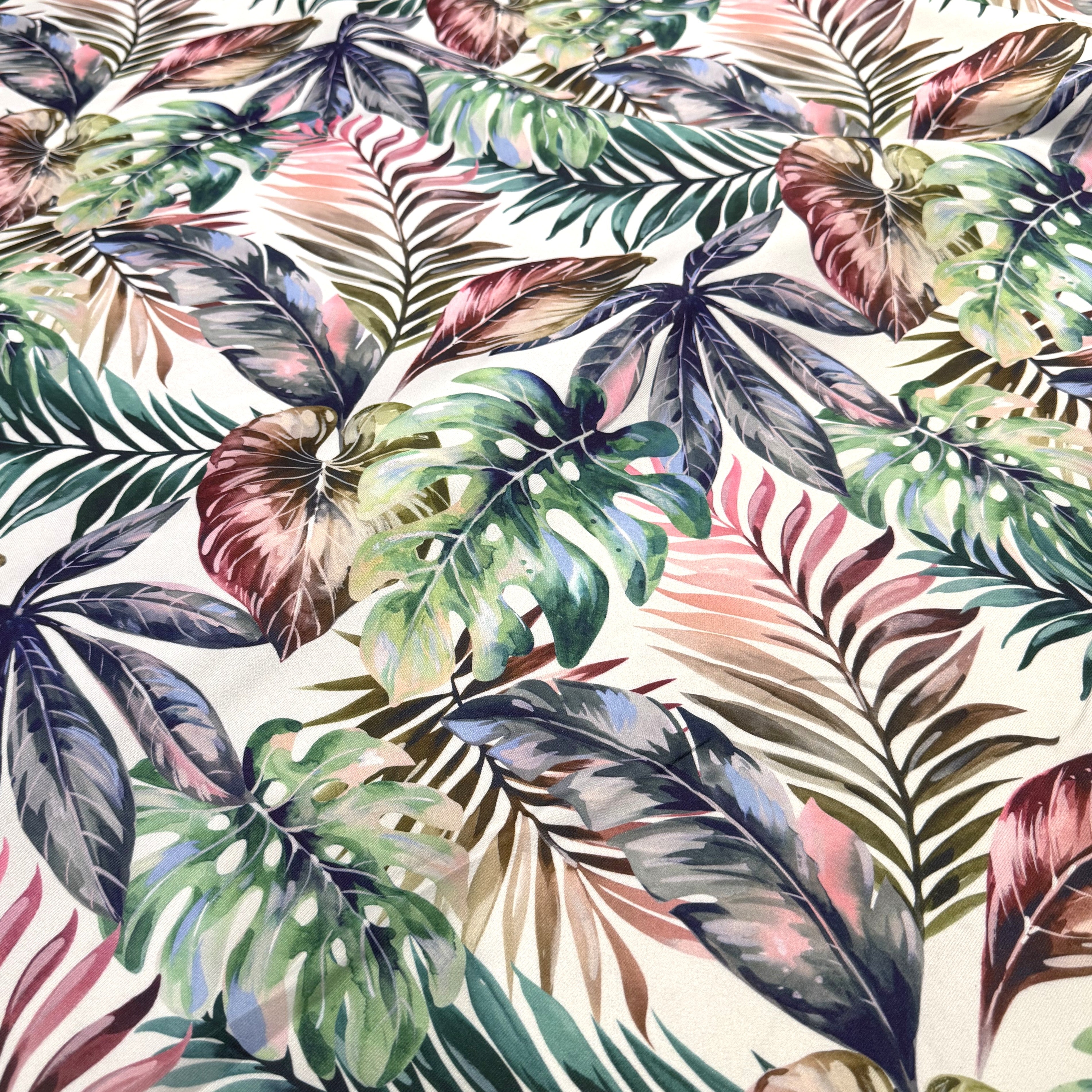 Fabric Collection: Bring island-inspired style to your décor with our Artisan Tropical (Poly Print) fabric. A vibrant tropical leaf print on durable polyester twill. Perfect for tablecloths, runners, napkins, and drapes, it’s wrinkle-resistant, easy to maintain, and ideal for weddings, special events, hotels, and event rental companies.