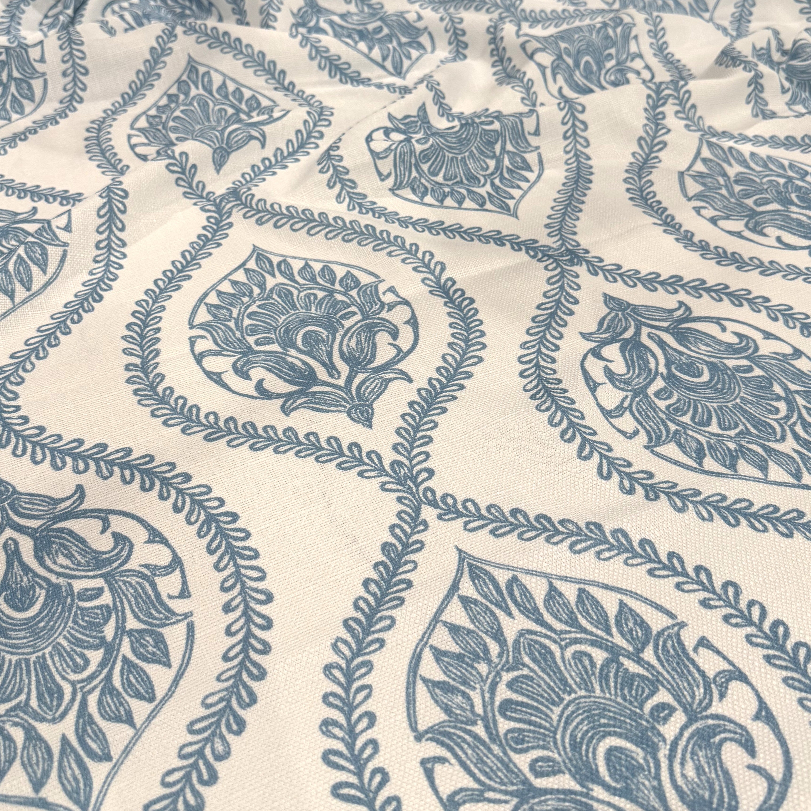 Fabric Collection: Mayfair (Slub Print) is a premium slubby, linen-inspired fabric featuring a refined ornamental pattern created through high-quality digital printing. The textured base provides a natural look and elegant drape, making it a sophisticated choice for elevated event décor.