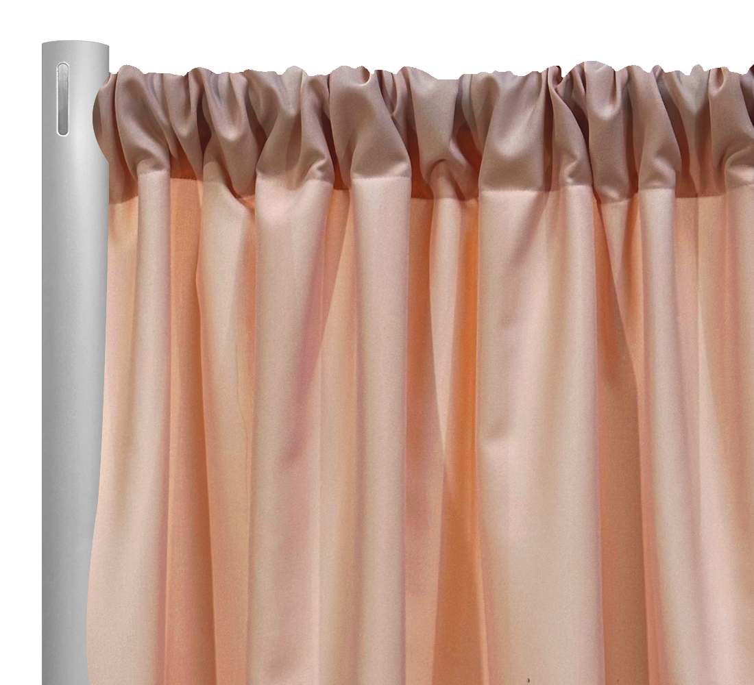 SIZE OPTIONS: Select your desired panel height above. Panels are approx. 58" wide and come standard with a 4" Rod Pocket on top. You can add a bottom Rod Pocket for an additional $5.00 per panel. Our drapes will work on any of our Pipe & Drape systems. Contact us at 800-590-9508 for custom sizing.
