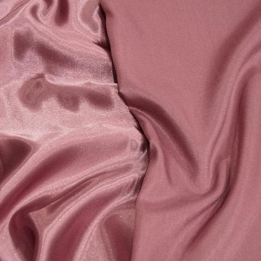Our Shantung Satin fabric is a 2 sided material - one side has a matte satin dupioni finish with subtle linear slub marks, and the other side offers a medium satin finish. It's an elegant choice for drapery panels and has the added benefit of providing two distinct fabric textures in one design.