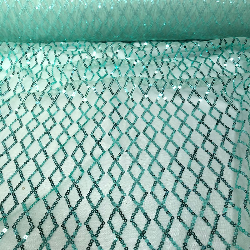 Fabric Collection: This fabric has a sheer base w/ a zig-zag diamond pattern in sequins embroidered throughout.