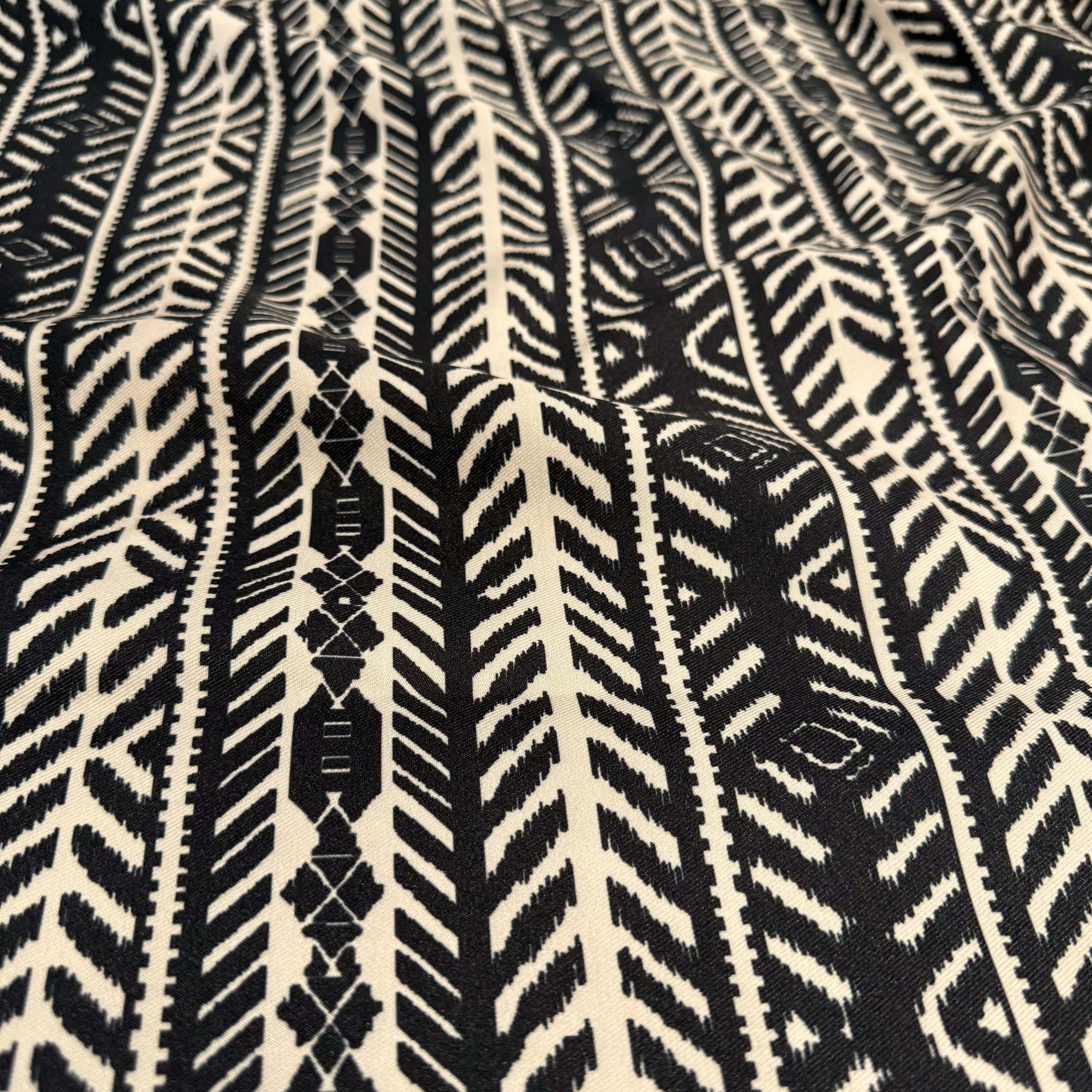 Enhance your special event décor with our Topaz (Poly Print) table linens, featuring an intricate boho-inspried geometric stripe pattern. This versatile fabric is perfect for adding a contemporary bohemian flair to any occasion, from weddings to upscale parties. Ideal for tablecloths, napkins, runners, and drapes, the unique design elevates the aesthetic of your event space, creating a memorable visual impact. Whether you're curating a sophisticated event or a casual-chic gathering, this fabric adds the perfect touch of boho-inspired elegance.