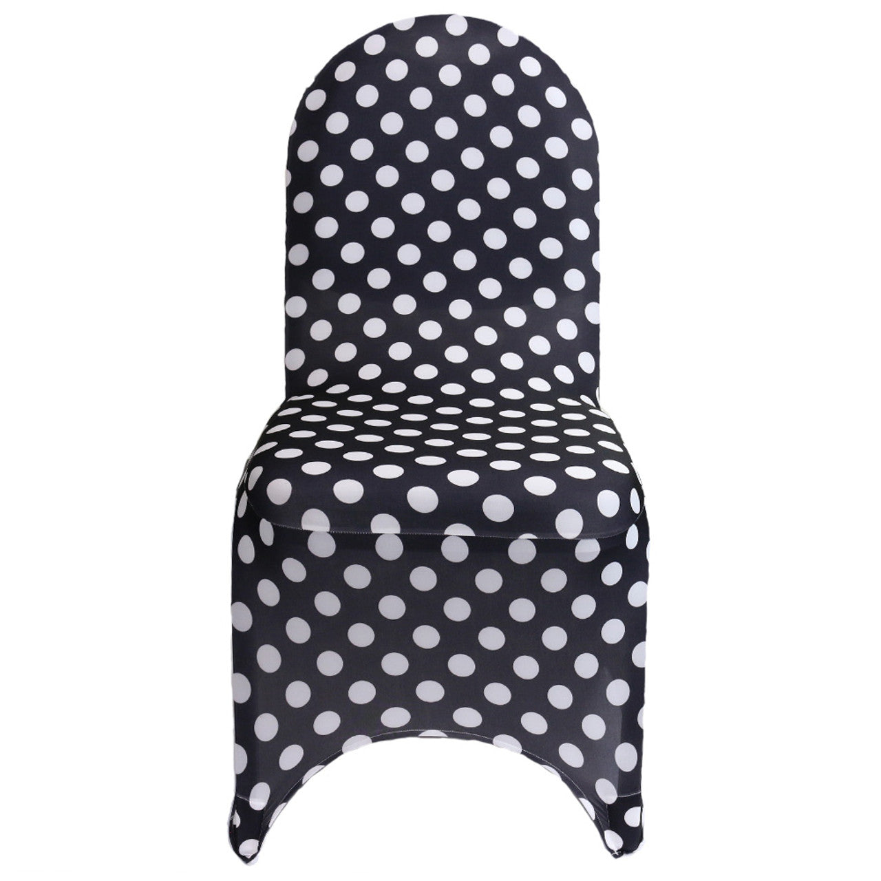 Print Spandex Banquet Chair Cover in Black and White Polka Dot