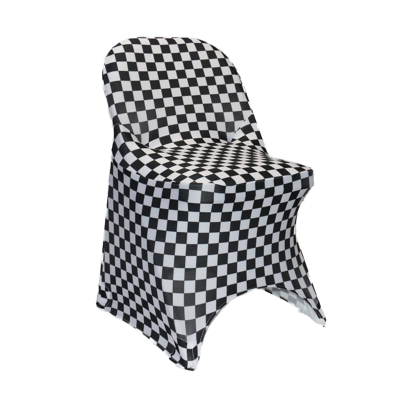 Print Spandex Folding Chair Cover in Black and White Checkered