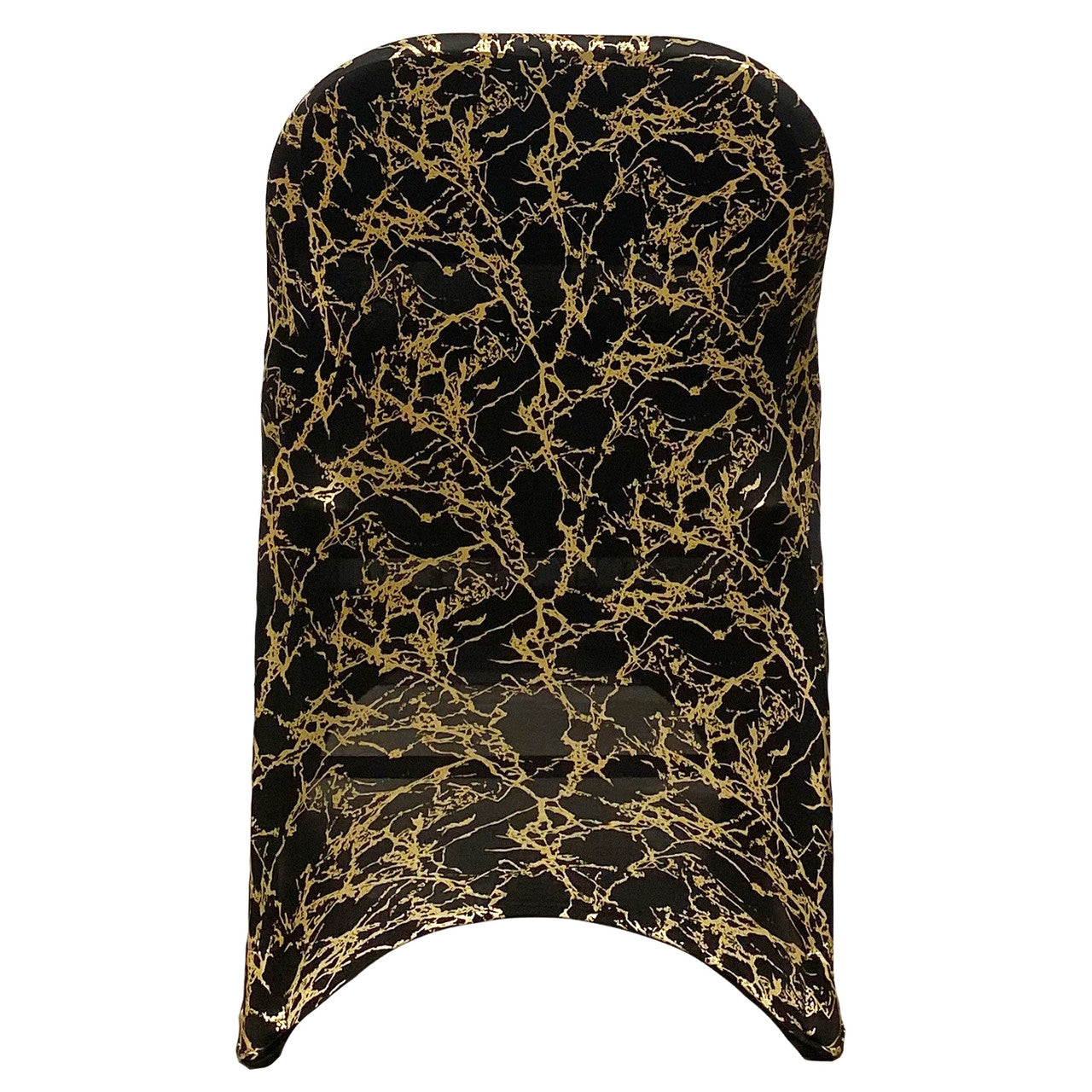 Print Spandex Folding Chair Cover in Black with Gold Marbling