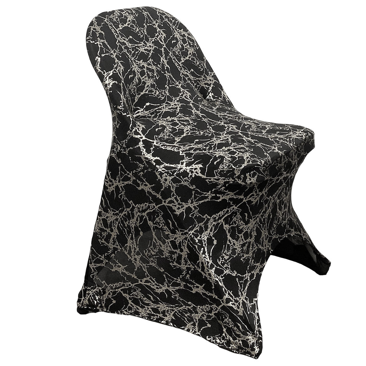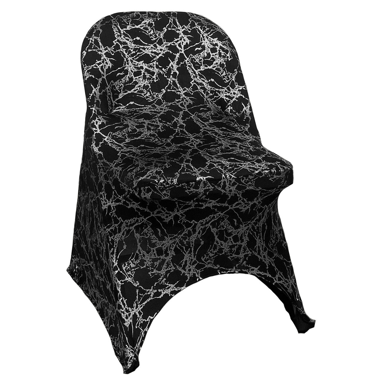 Print Spandex Folding Chair Cover in Black with Silver Marbling