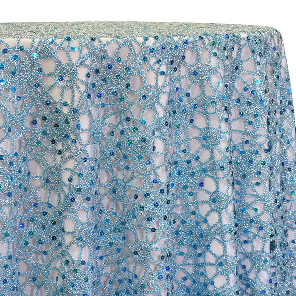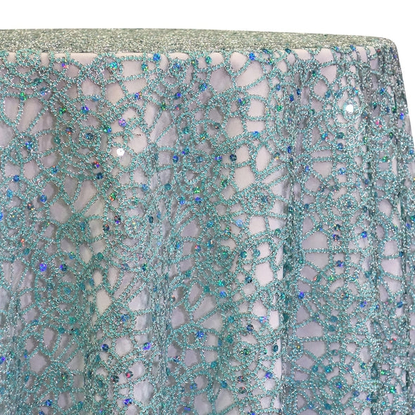 Flower Chain Lace Table Linen in Turquoise and Silver
