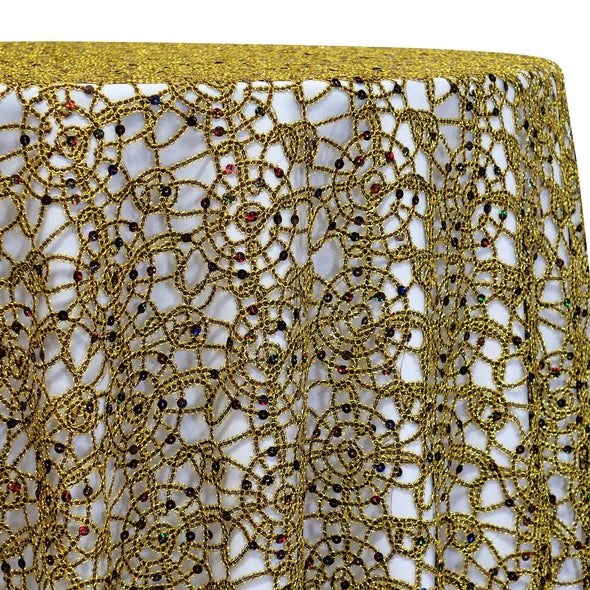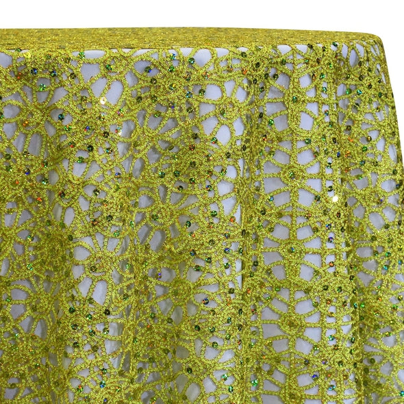 Flower Chain Lace Table Linen in Teal Green and Gold