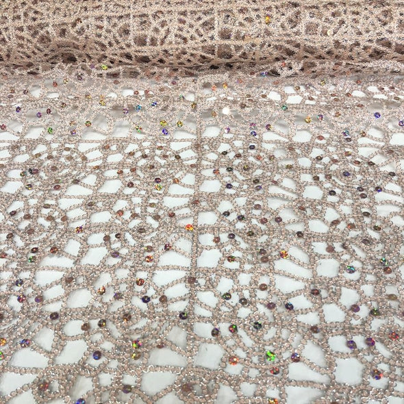 Flower Chain Lace Wholesale Fabric in Pink and Silver