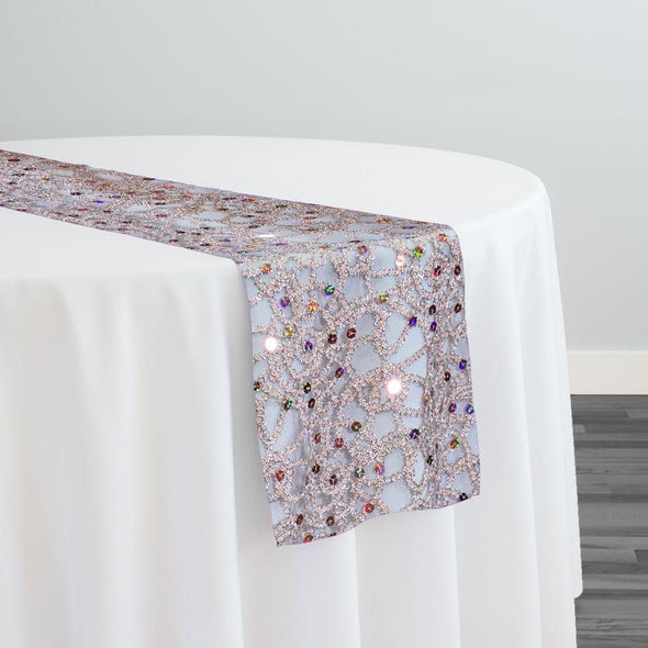 Flower Chain Lace Table Runner in Turquoise and Silver
