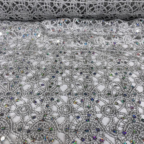 Flower Chain Lace Wholesale Fabric in Silver and White