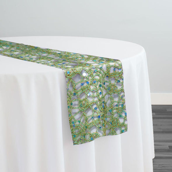 Flower Chain Lace Table Runner in Teal Green and Gold