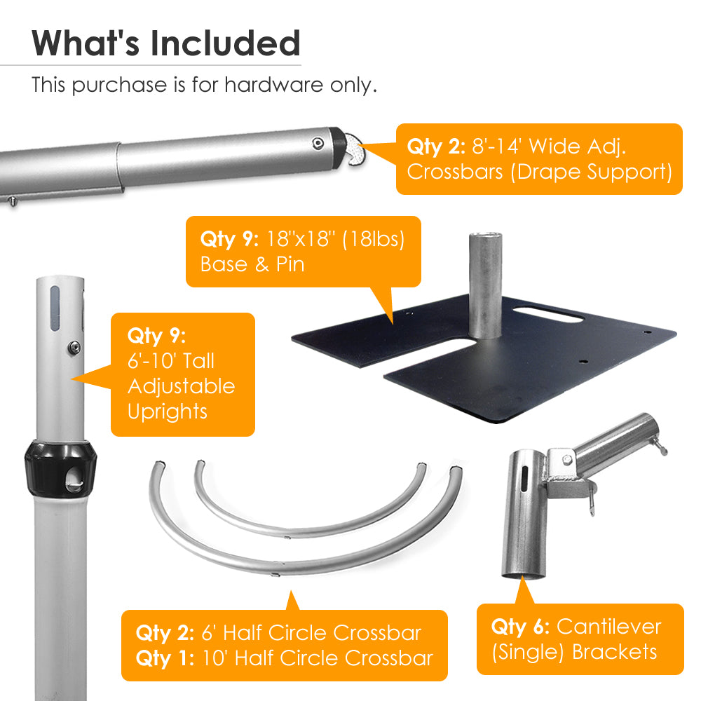 »(Qty 2) 8'-14' Wide Adjustable Crossbar (Drape Support)