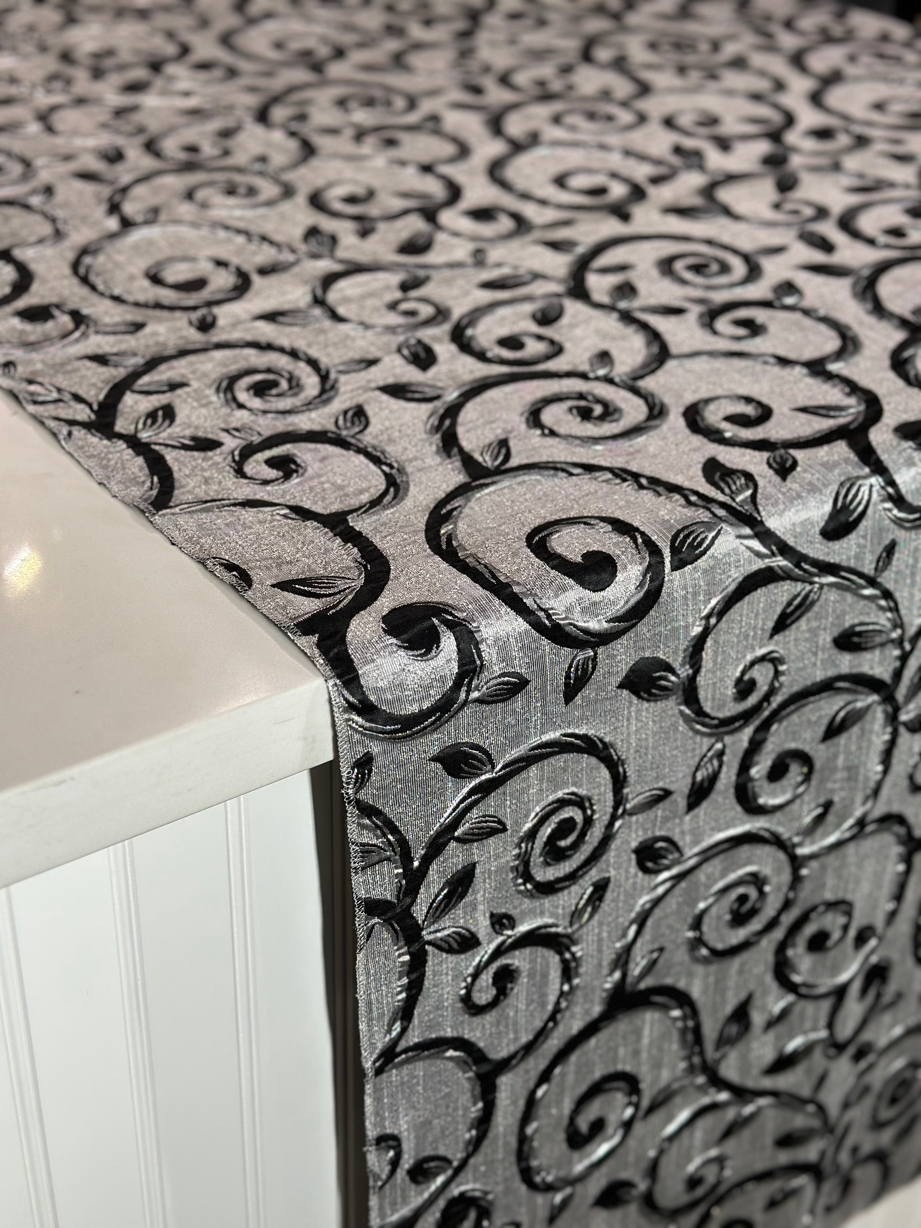 Tuscany Jacquard (Reversible) Table Linen in Black and Silver
