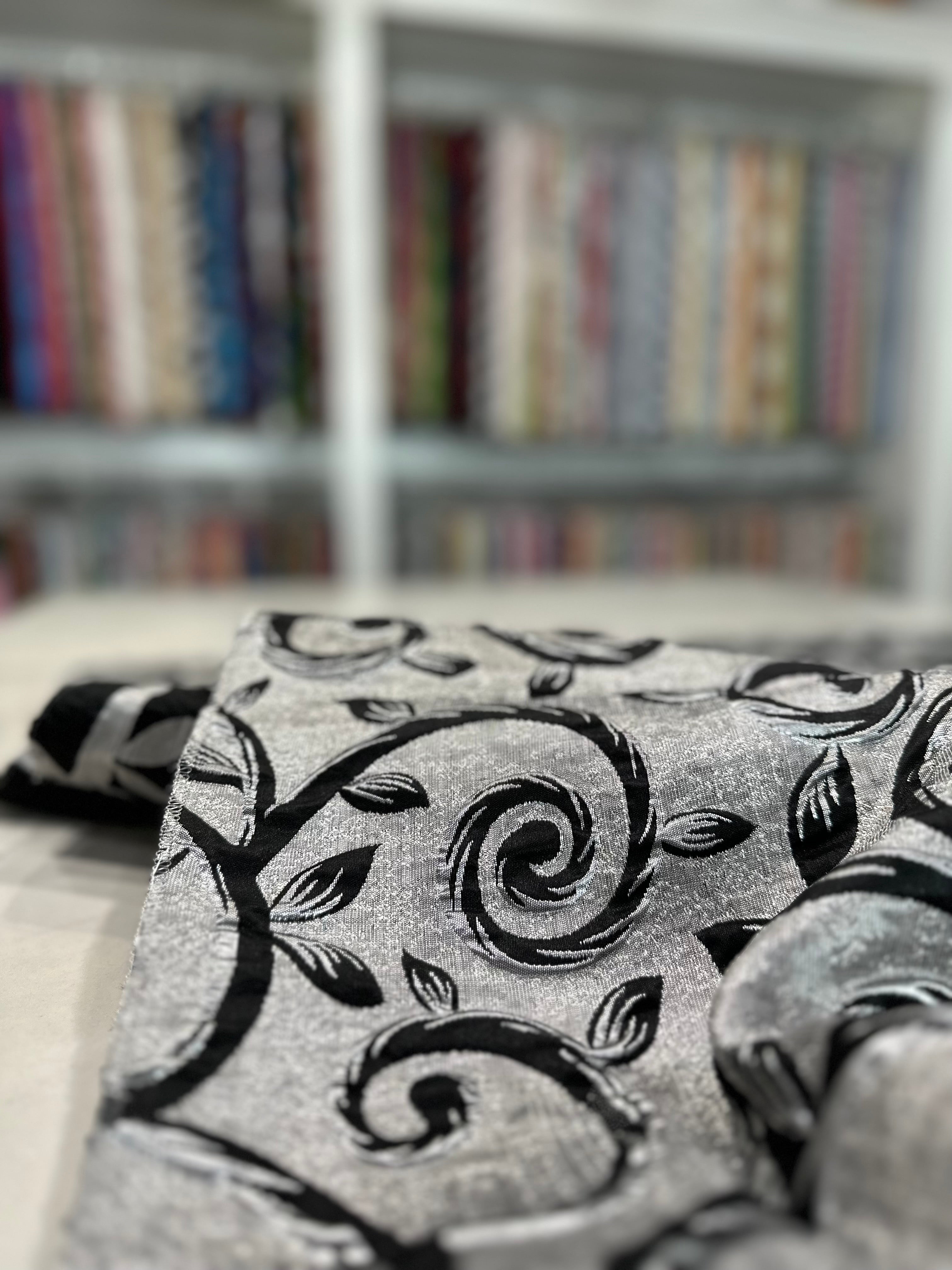 Fabric Collection: This fabric is a Jacquard embroidery in a swirly vine pattern throughout the fabric.