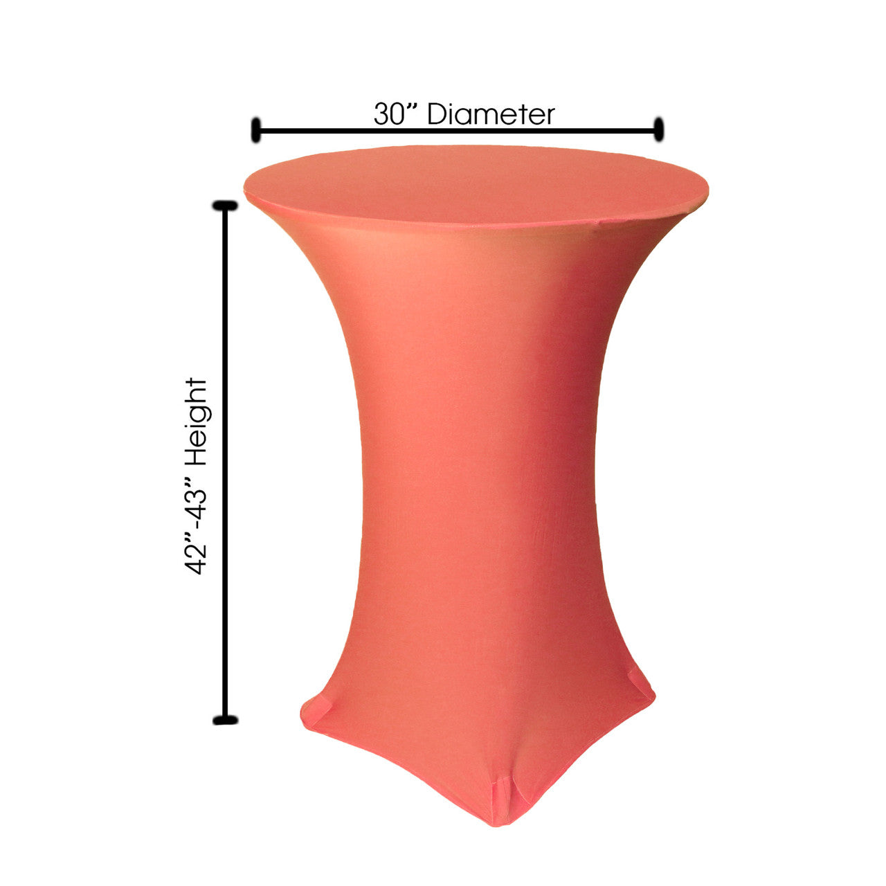 Our durable spandex chair covers fit standard 30"x42" Highboy/Cocktail Tables (30" Round x 42" Tall w/ 4 Leg Base). They're made from high quality spandex with a 4-way stretch so they're easy to put on and made to last. They're also made with durable elastic foot pockets which help secure the cover in place, ensure a great fit, and help prevent damage and excess wear and tear. These covers are a perfect way to improve the look of your chair covers and ideal for rental companies, banquet halls, hotels, various venues and special events.