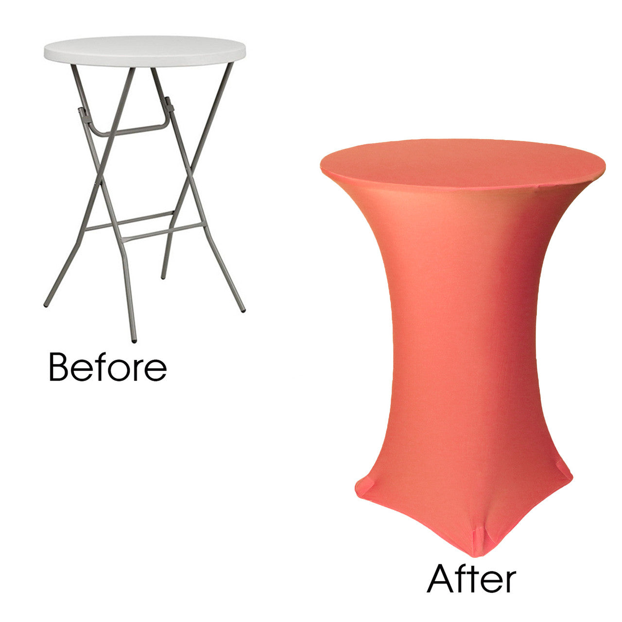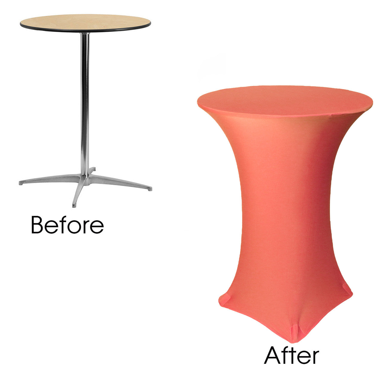 Our durable spandex chair covers fit standard 36"x42" Highboy Tables (36" Round x 42" Tall w/ 4 Leg Base). They're made from high quality spandex with a 4-way stretch so they're easy to put on and made to last. They're also made with durable elastic foot pockets which help secure the cover in place, ensure a great fit, and help prevent damage and excess wear and tear. These covers are a perfect way to improve the look of your chair covers and ideal for rental companies, banquet halls, hotels, various venues and special events.