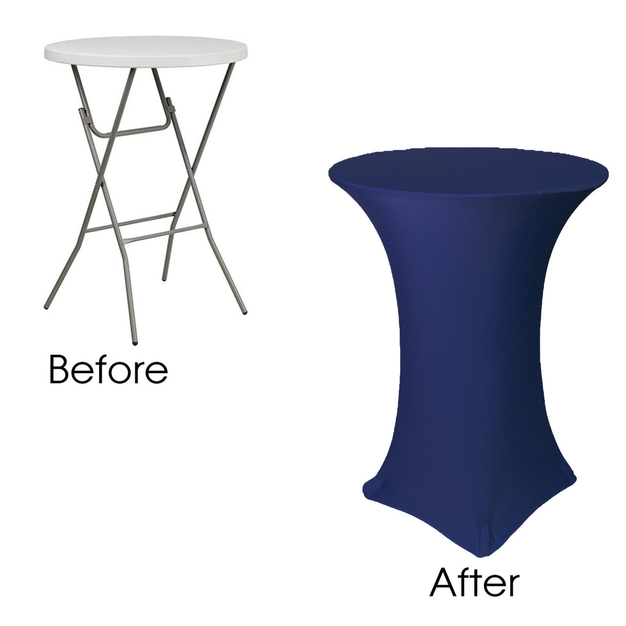 Our durable spandex chair covers fit standard 36"x42" Highboy Tables (36" Round x 42" Tall w/ 4 Leg Base). They're made from high quality spandex with a 4-way stretch so they're easy to put on and made to last. They're also made with durable elastic foot pockets which help secure the cover in place, ensure a great fit, and help prevent damage and excess wear and tear. These covers are a perfect way to improve the look of your chair covers and ideal for rental companies, banquet halls, hotels, various venues and special events.
