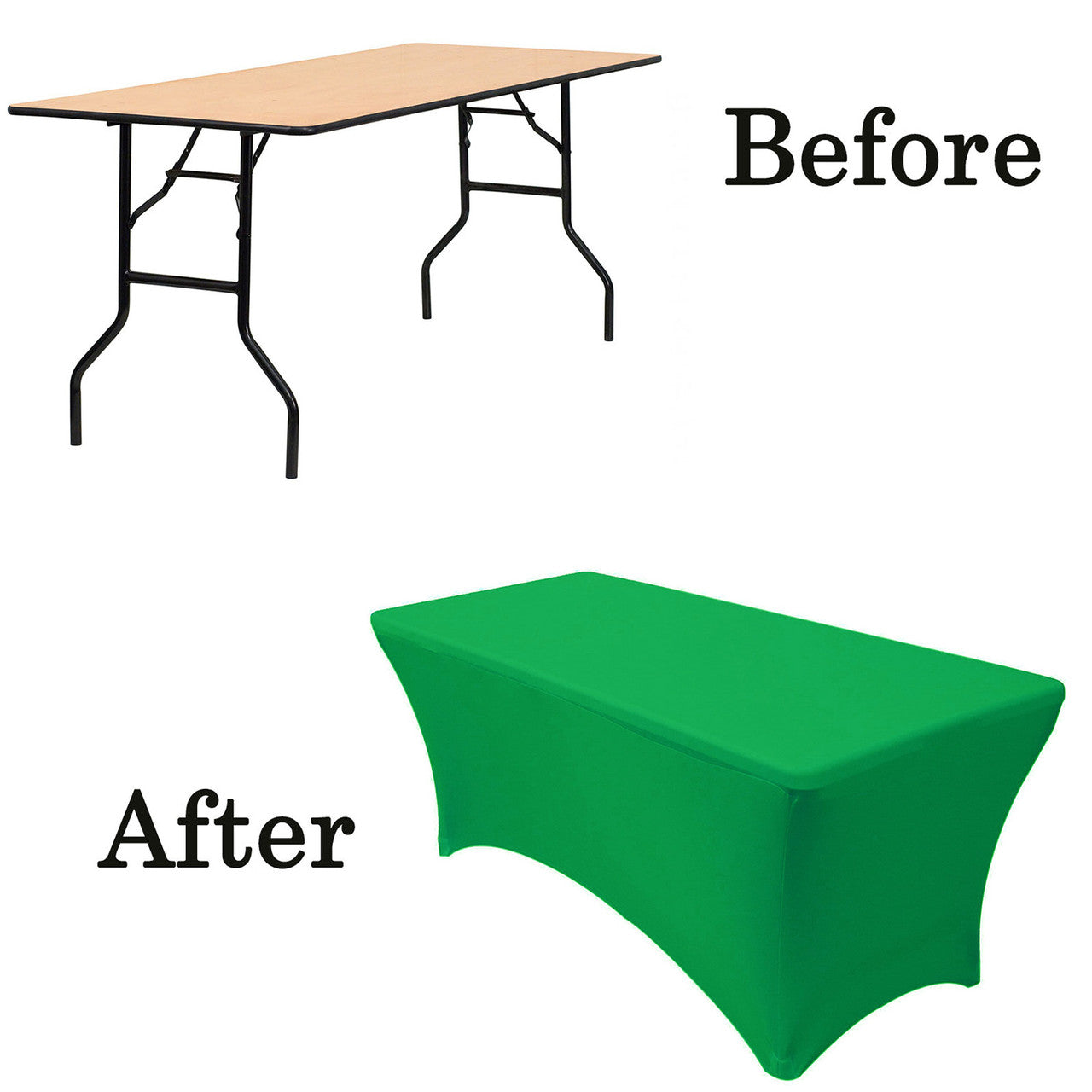 Our durable spandex chair covers fit standard 8' Banquet Tables (8' Length x 30" Depth x 30" Tall). They're made from high quality spandex with a 4-way stretch so they're easy to put on and made to last. They're also made with durable elastic foot pockets which help secure the cover in place, ensure a great fit, and help prevent damage and excess wear and tear. These covers are a perfect way to improve the look of your chair covers and ideal for rental companies, banquet halls, hotels, various venues and special events.