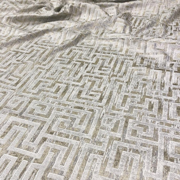 Fabric Collection: This fabric is a Jacquard material with a metallic geometric embroidered design throughout.