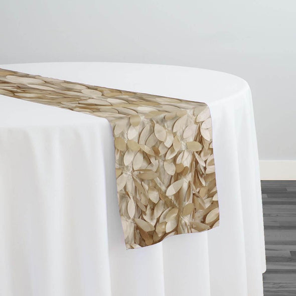 Leaf Hanging Taffeta Table Runner in Taupe and Gold