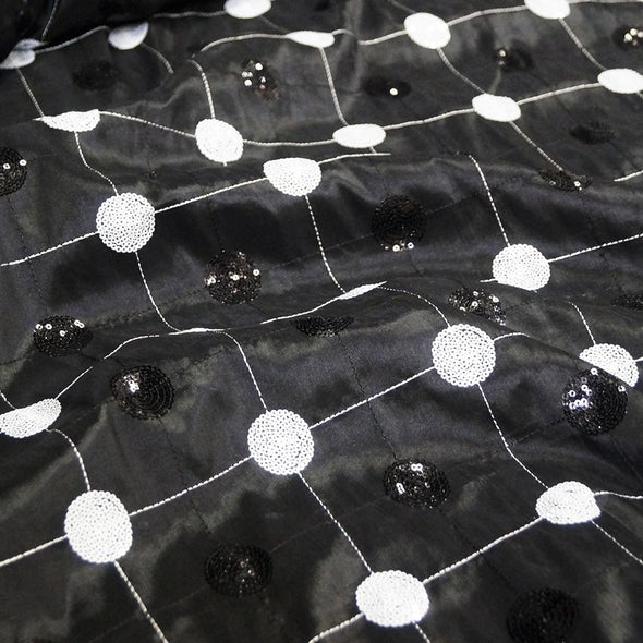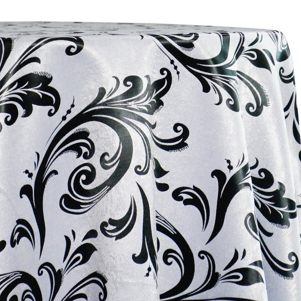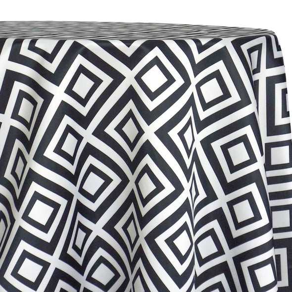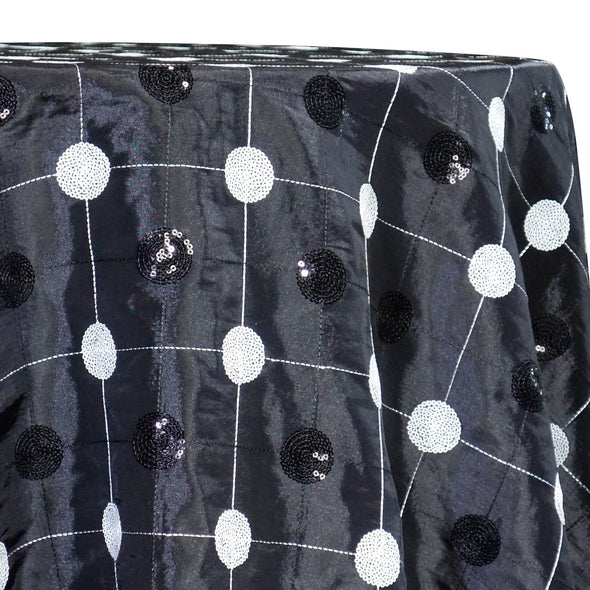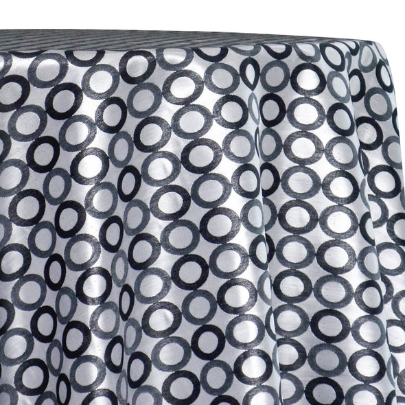 Funzie (Circle Hanging) Taffeta Table Linen in White on Black