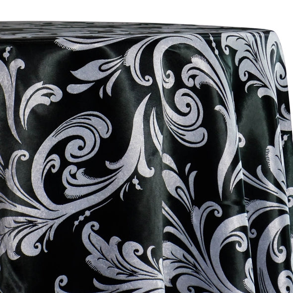 Majestic (Metallic Print) Table Linen in Black and Silver