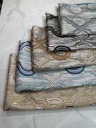 Fabric Collection: 100% Polyester base with metallic embroidered design and multi tone color throughout.