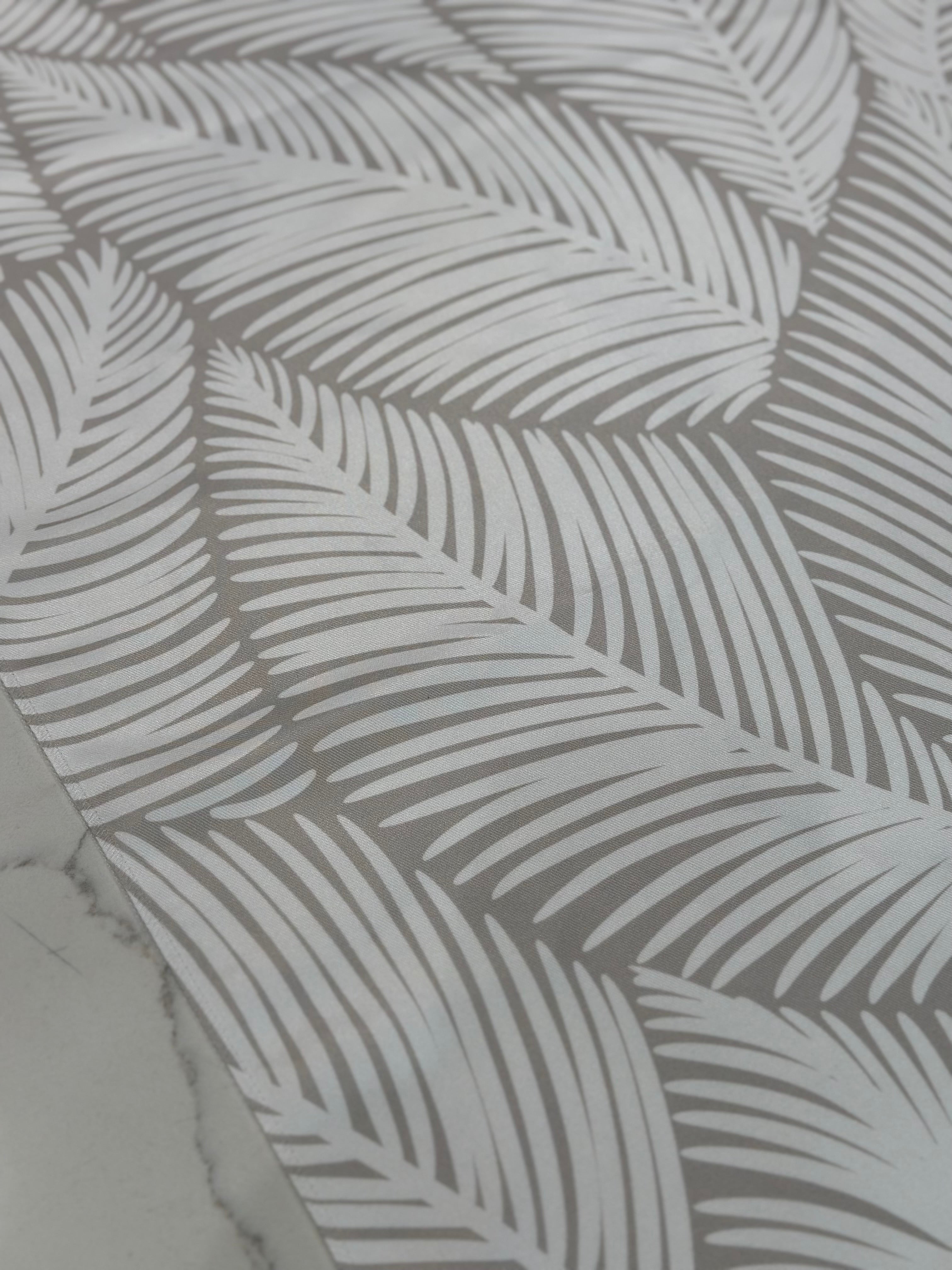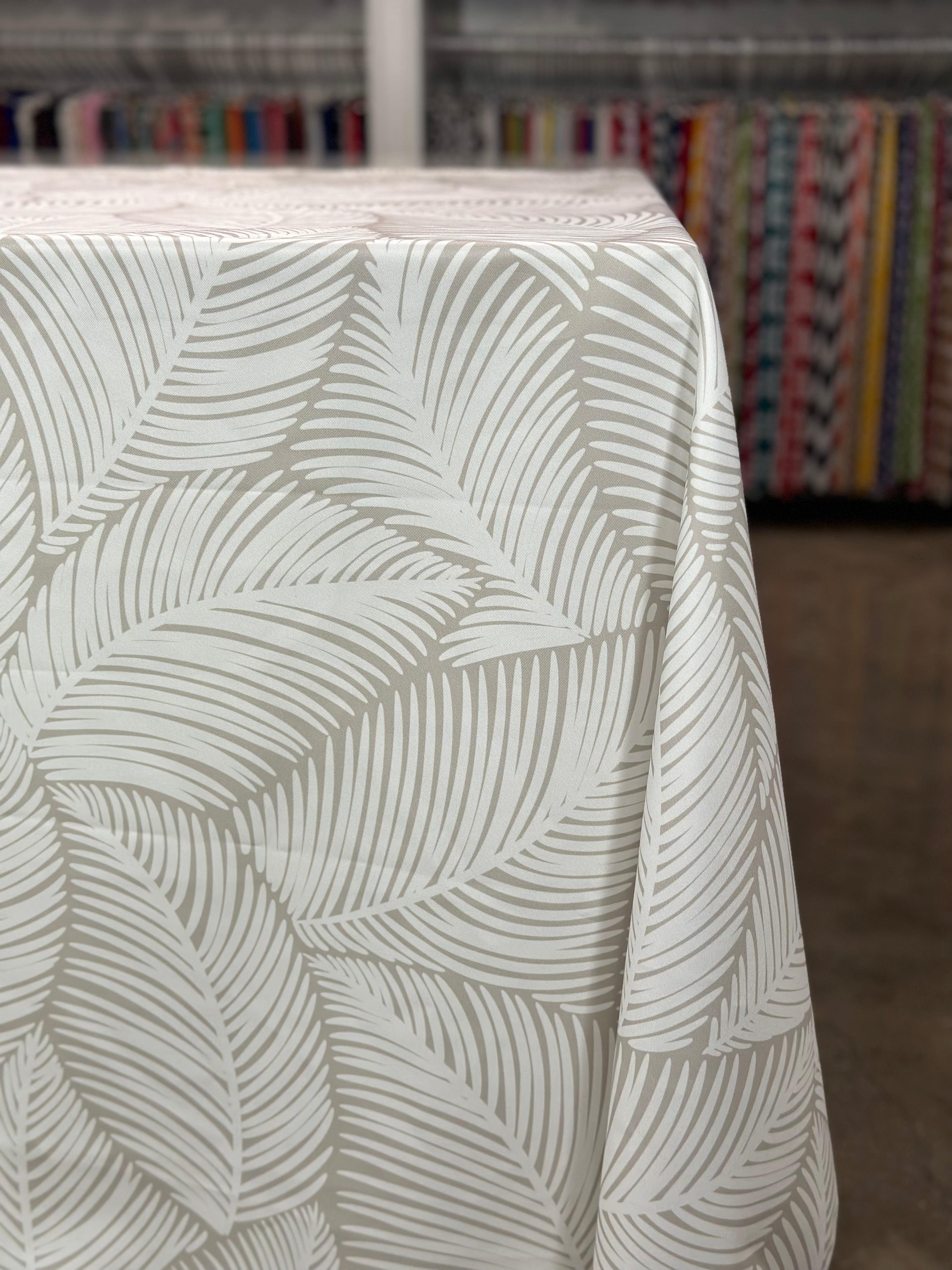 Fabric Collection: This fabric is 100% polyester base with our "Tulum" palm leaves throughout the fabric with a white background.