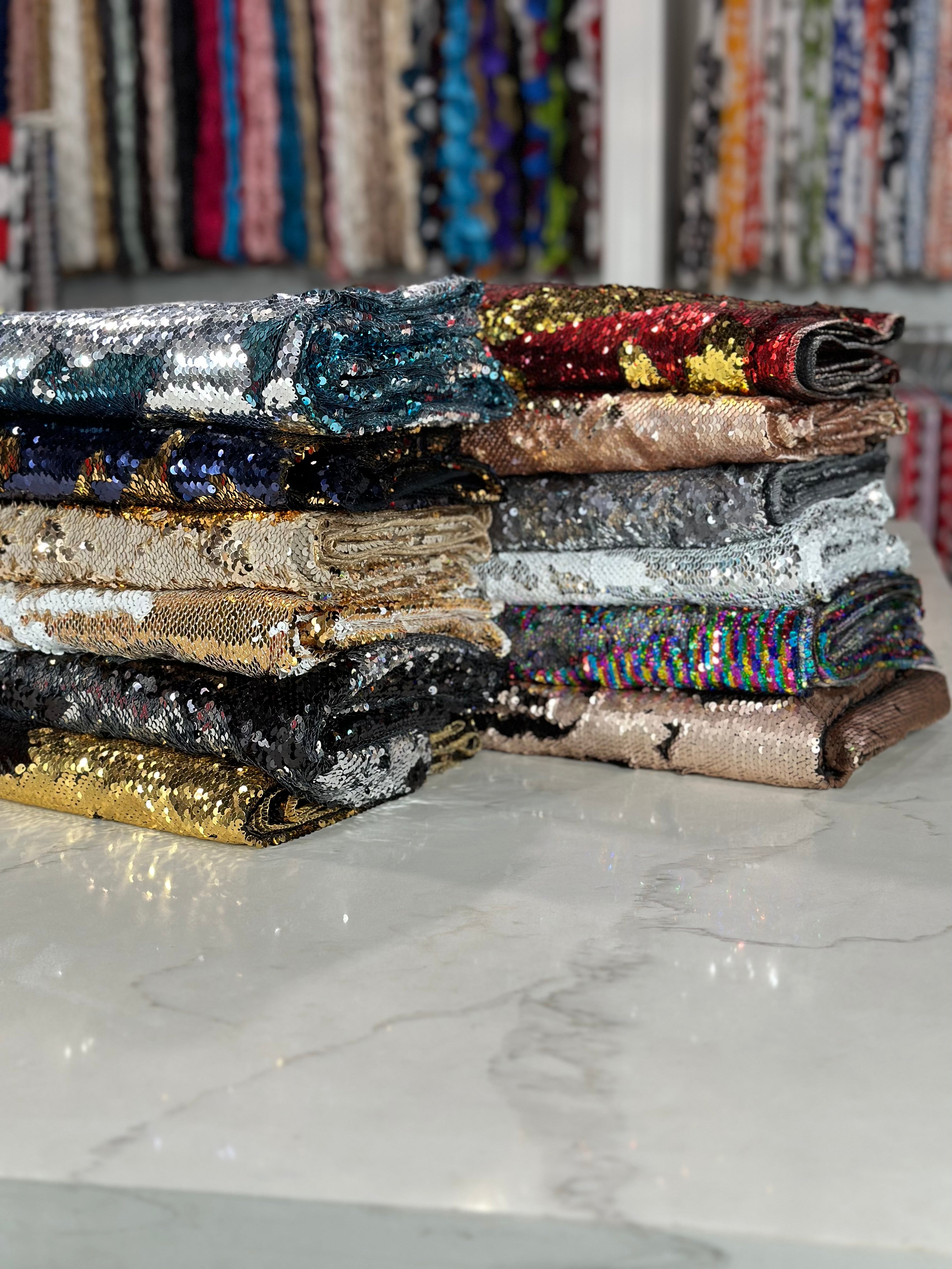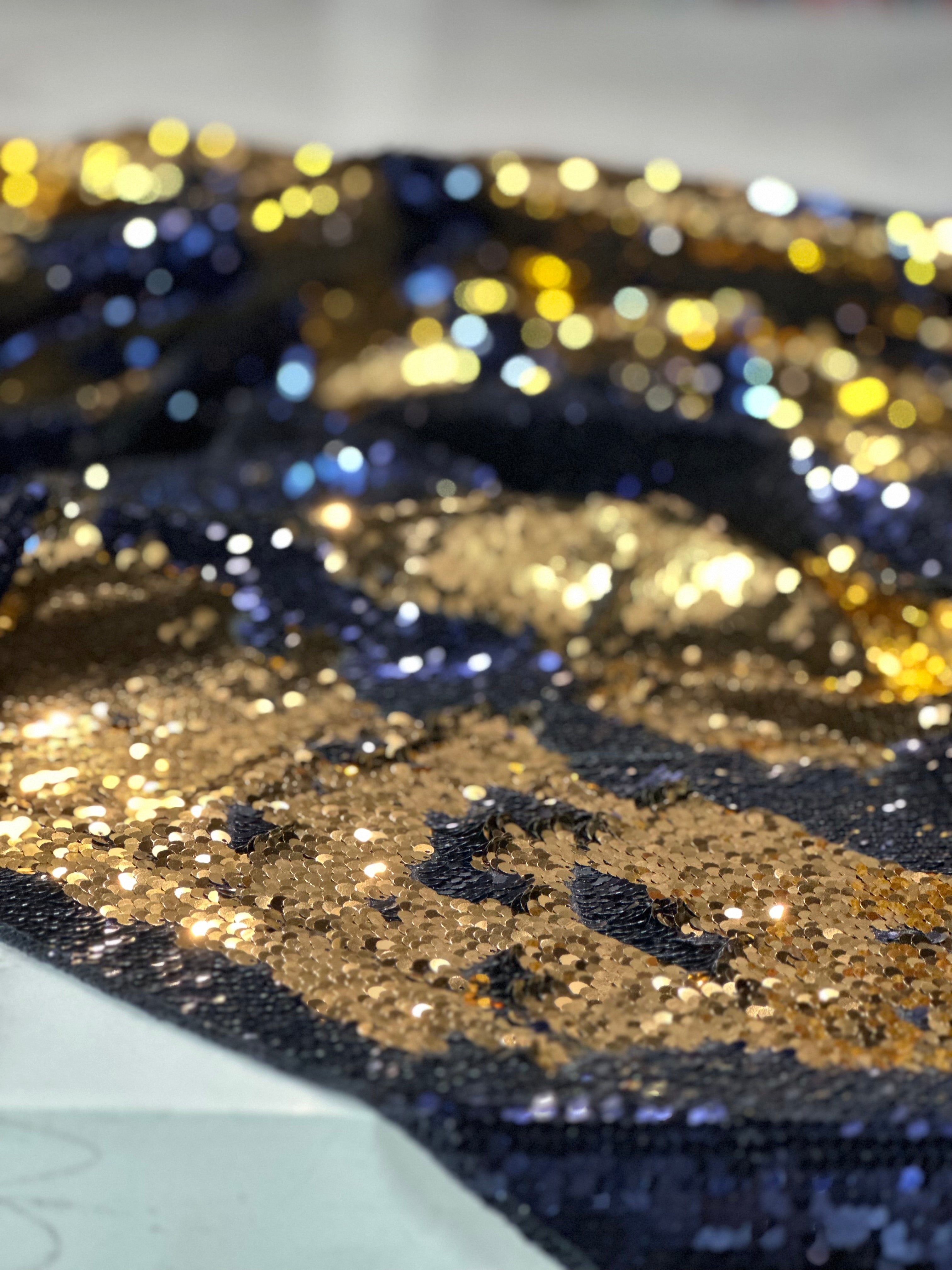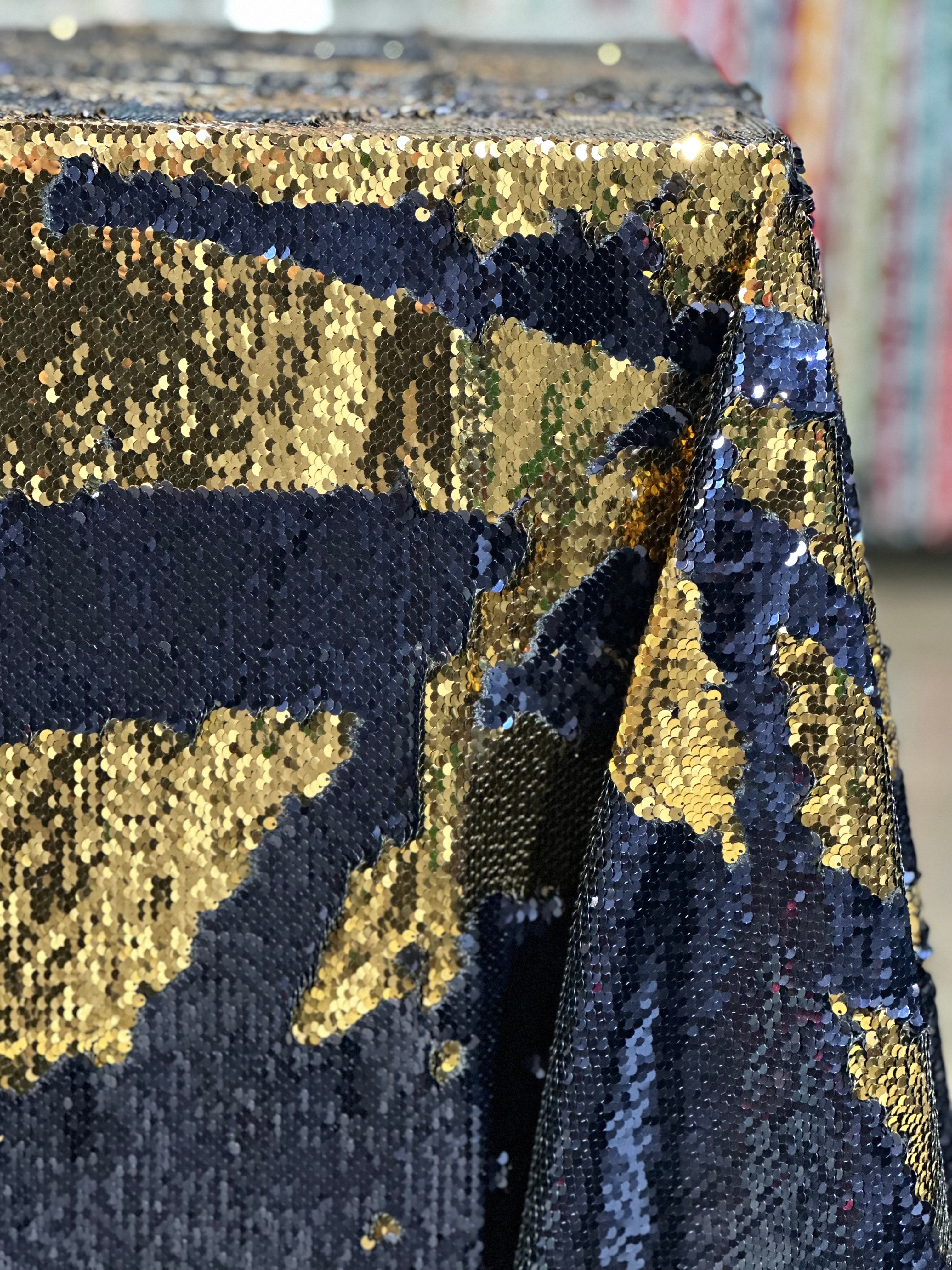 Two-Tone Sequins Table Linen in Navy and Rose Gold