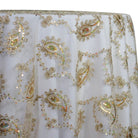 Fabric Collection: This fabric has a mesh netting base w/ a Paisley design embroidery with sequins throughout.