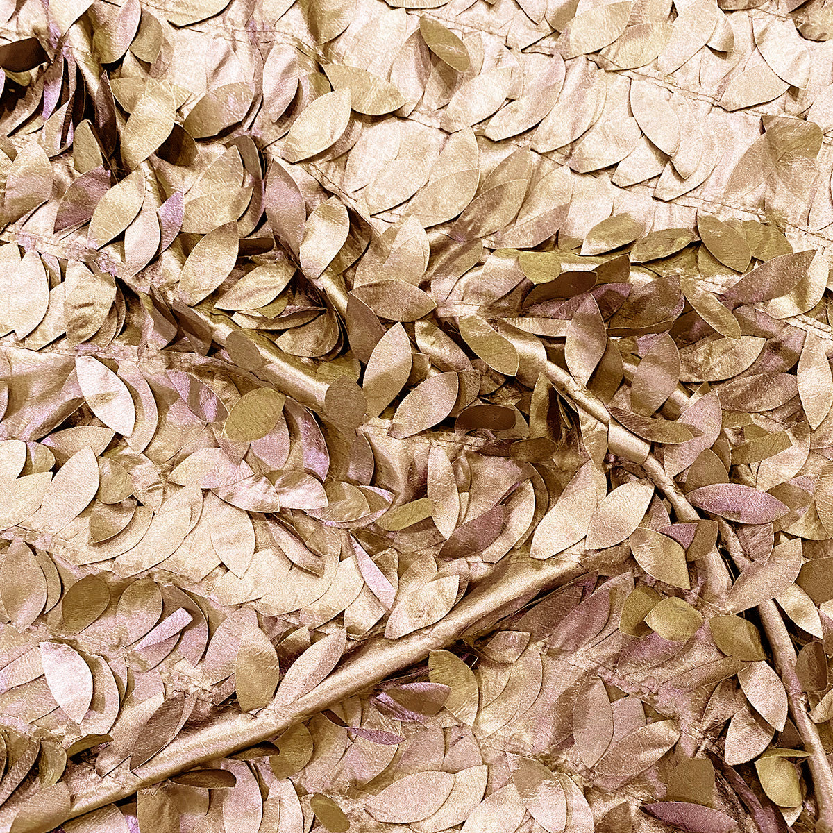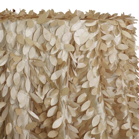 Leaf Hanging Taffeta Table Linen in Taupe and Gold