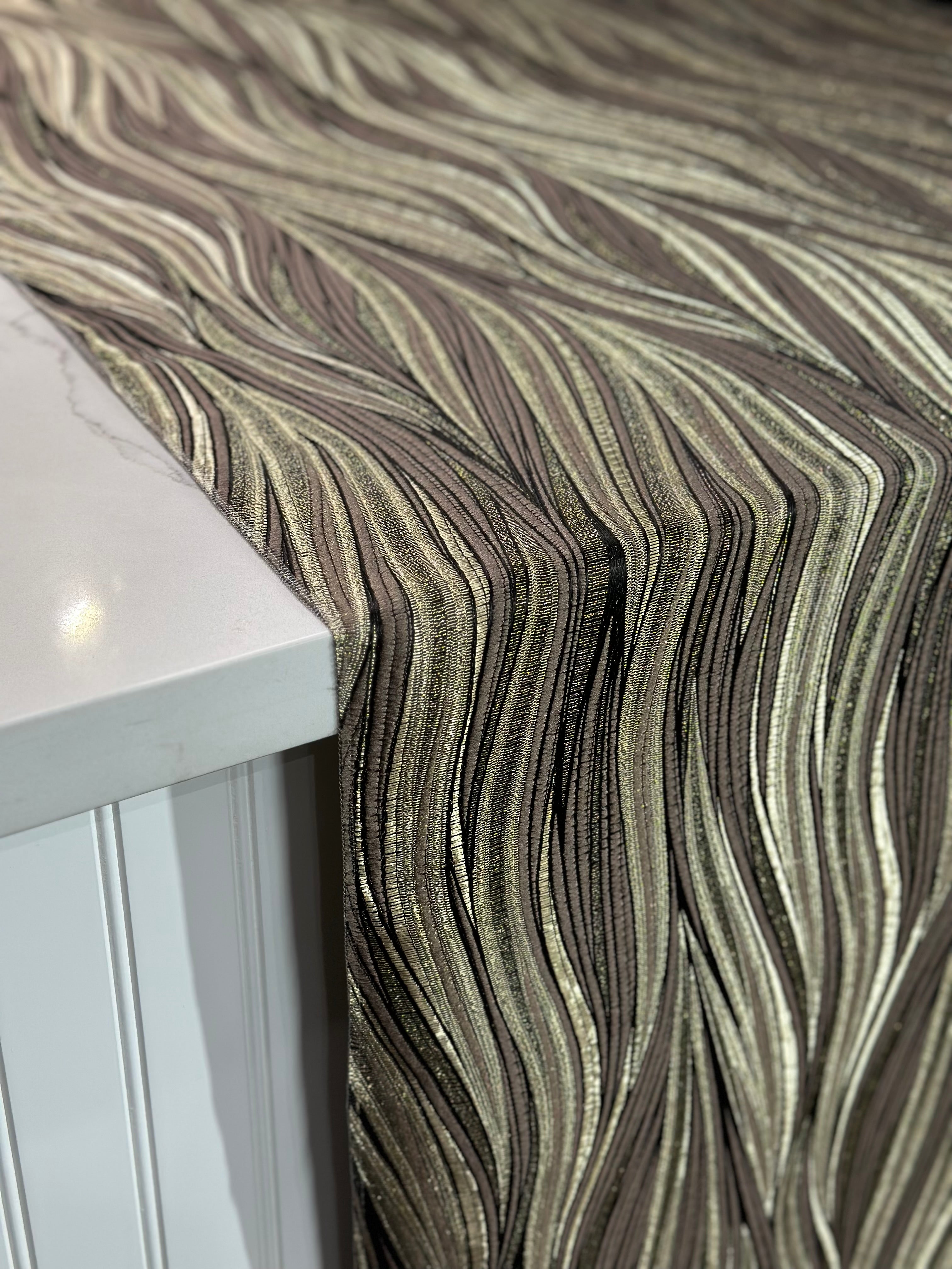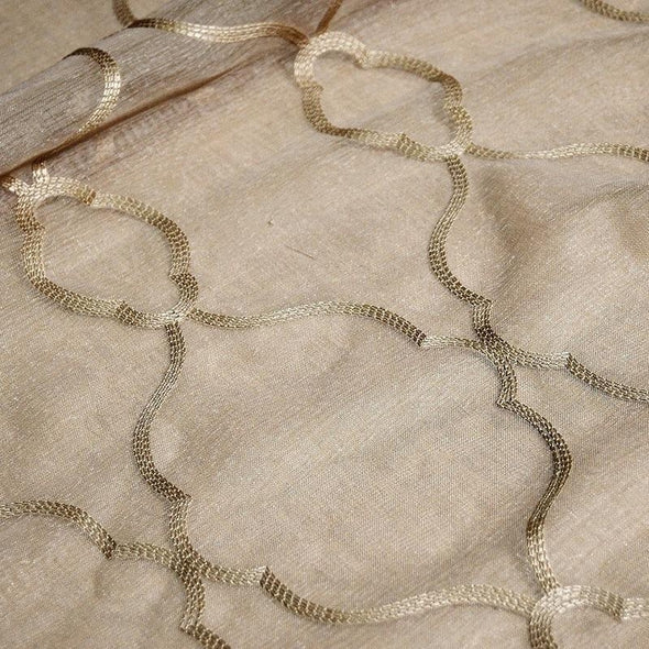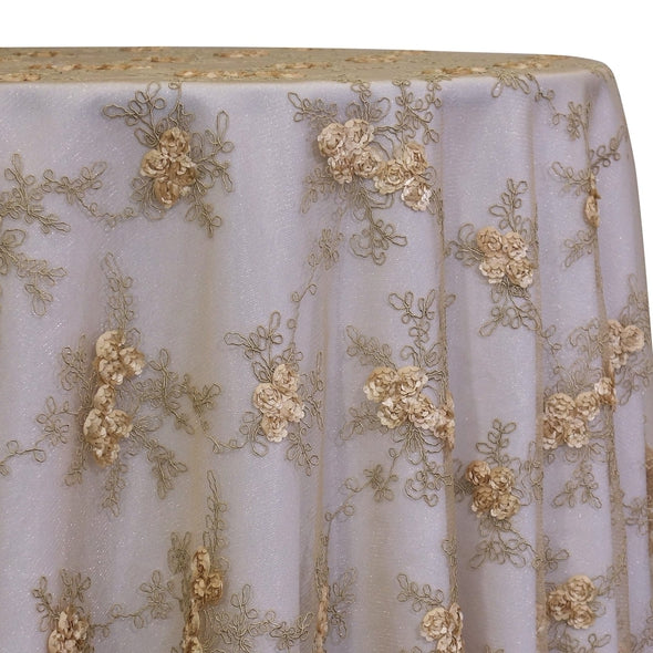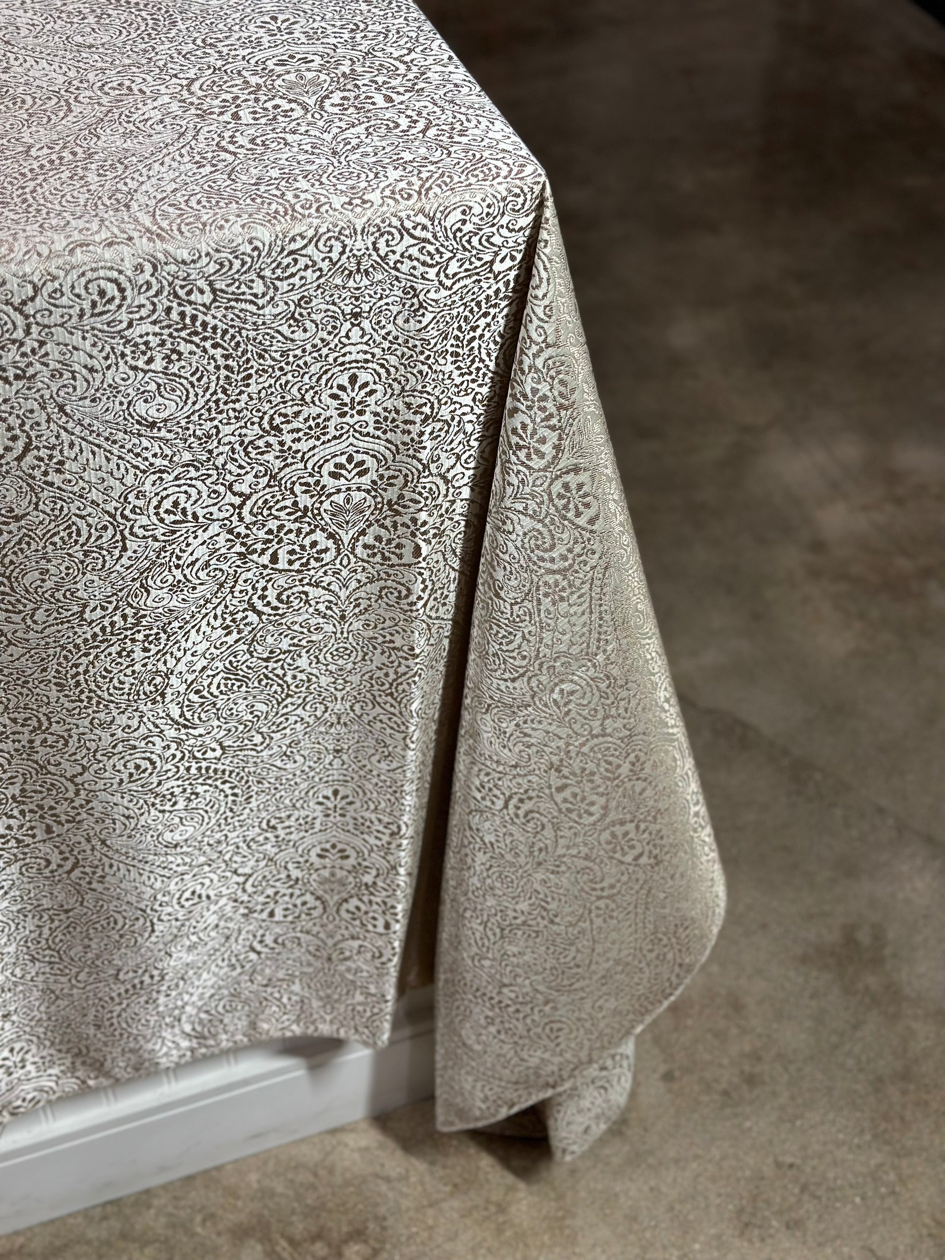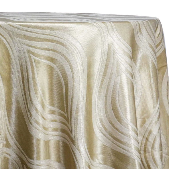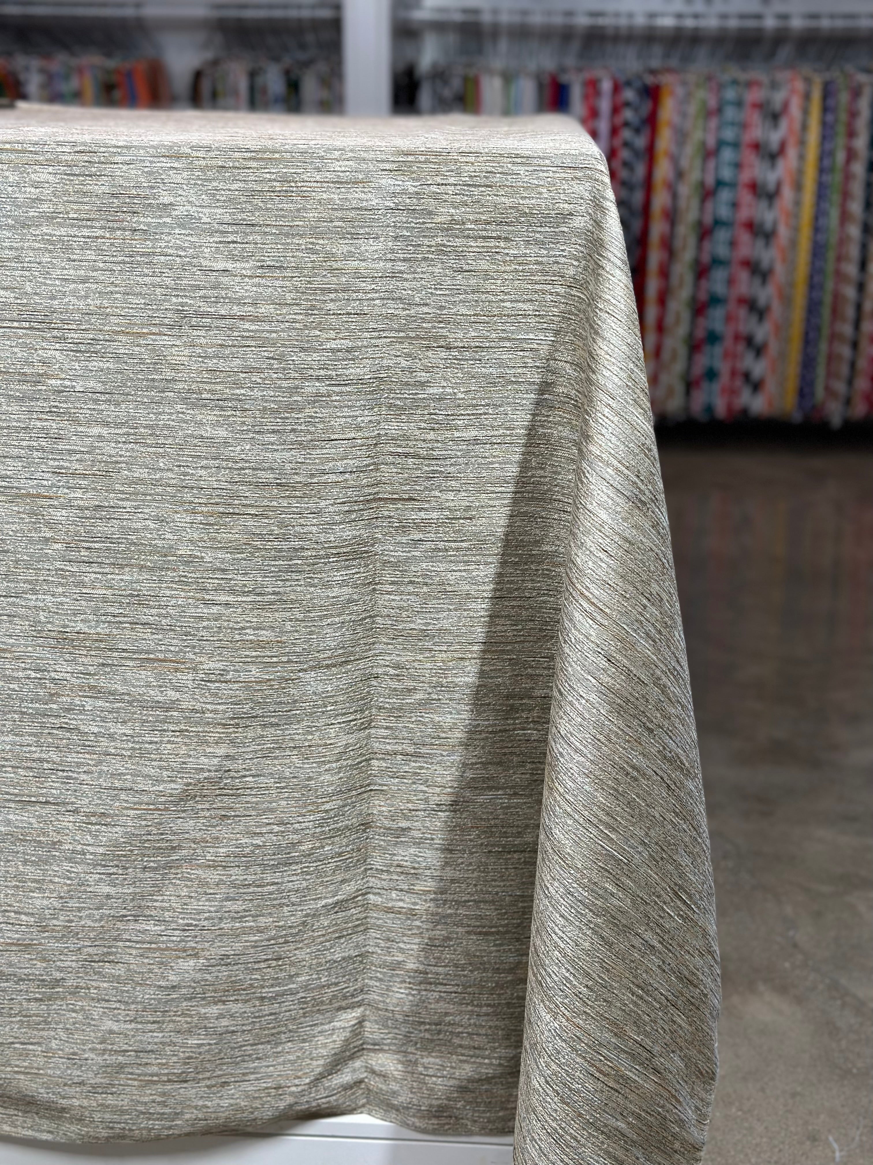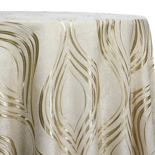 Leaf Hanging Taffeta Table Linen in Taupe and Gold