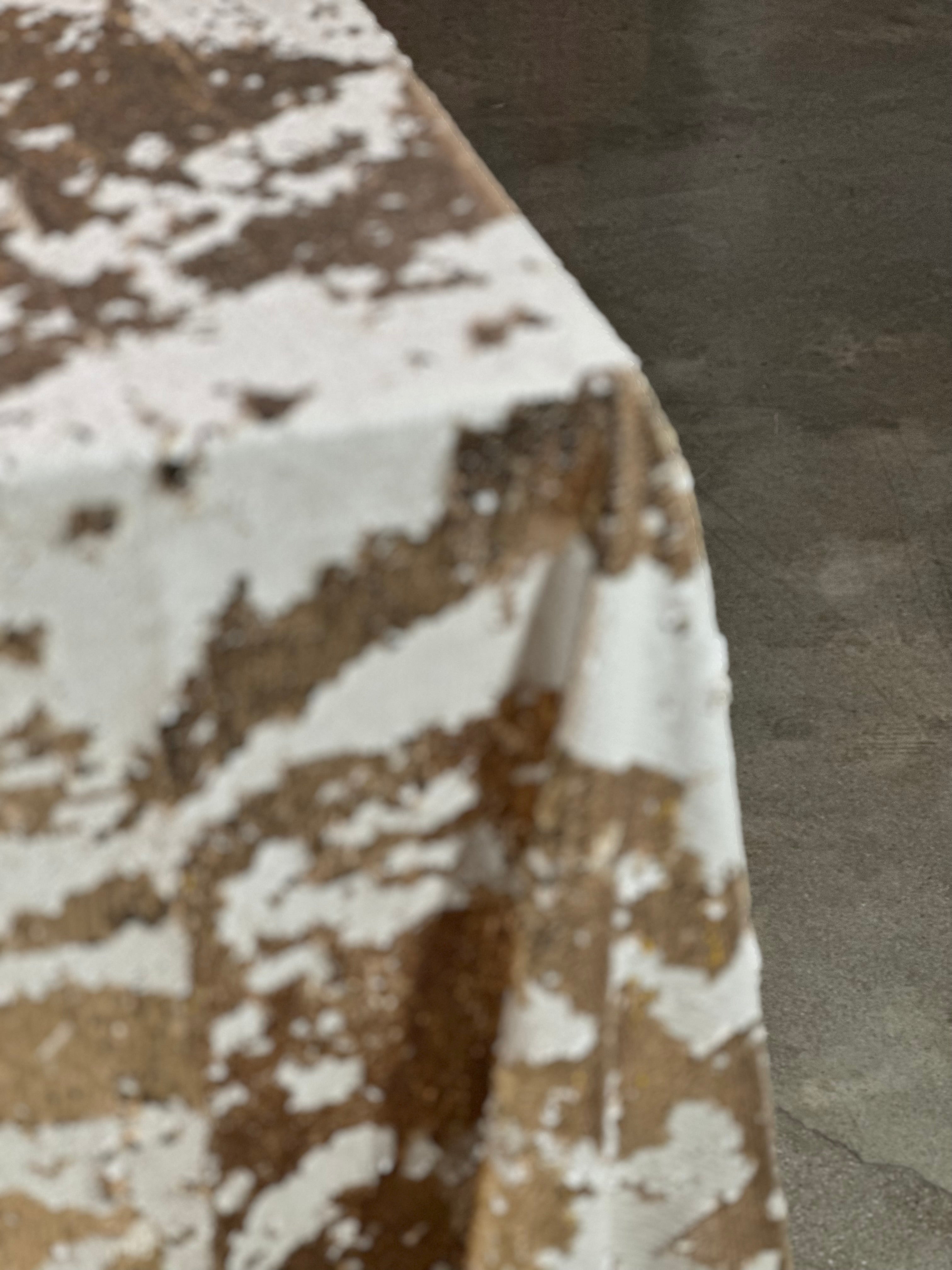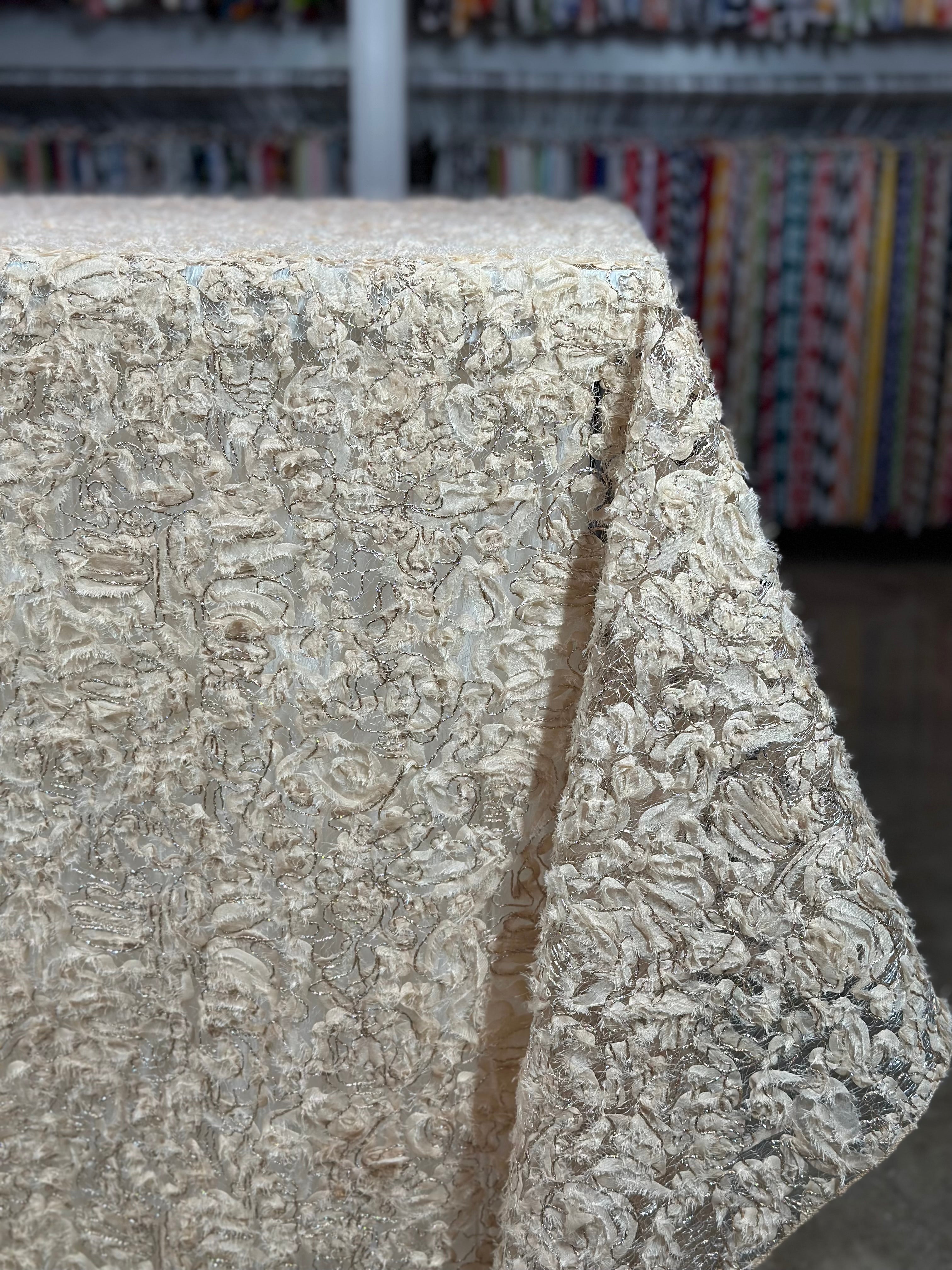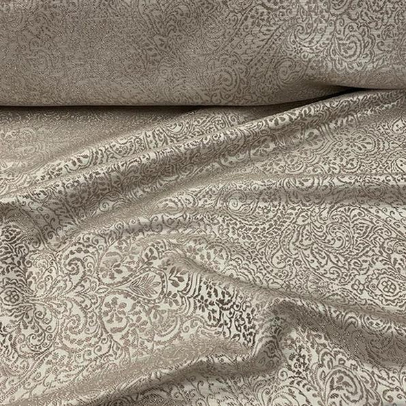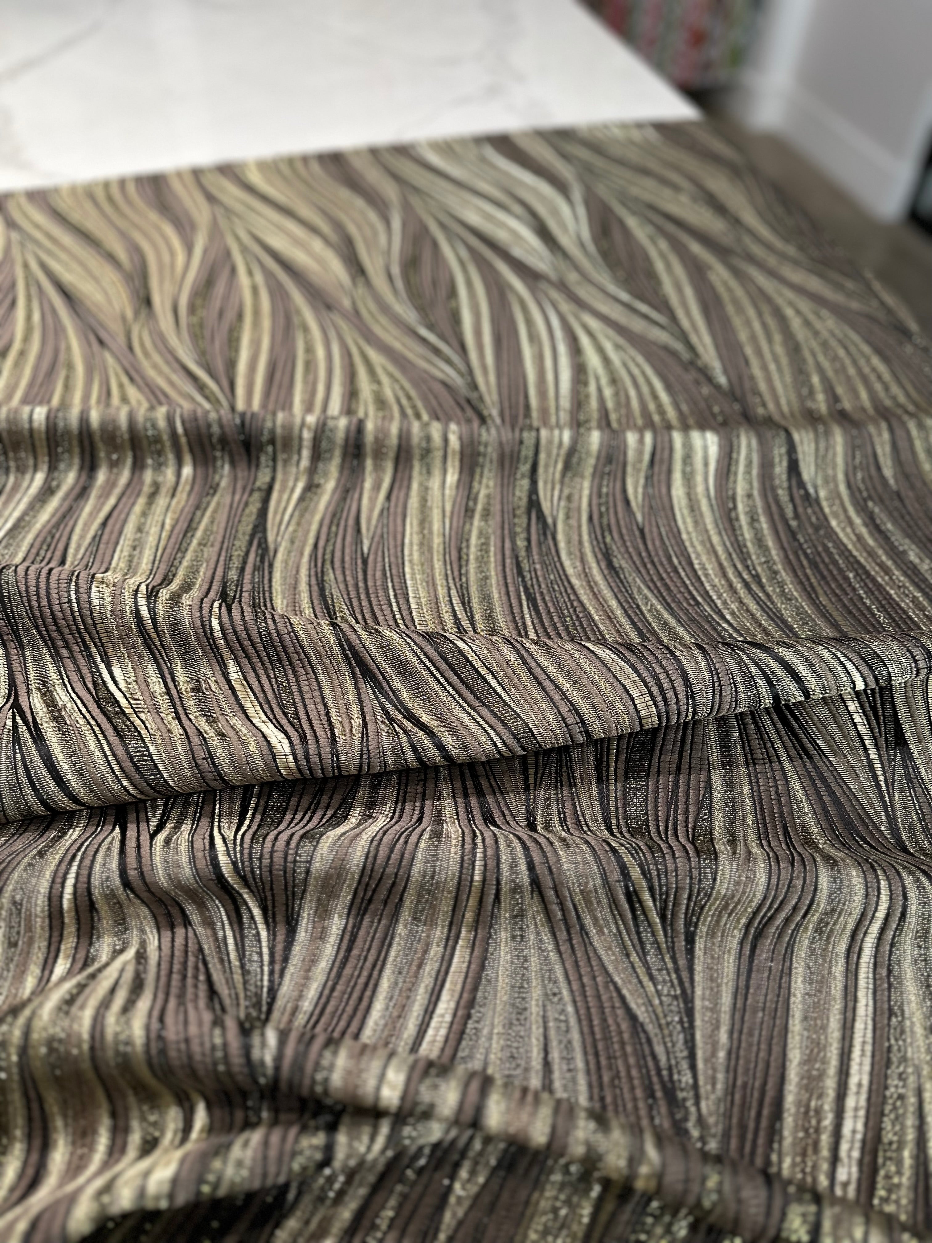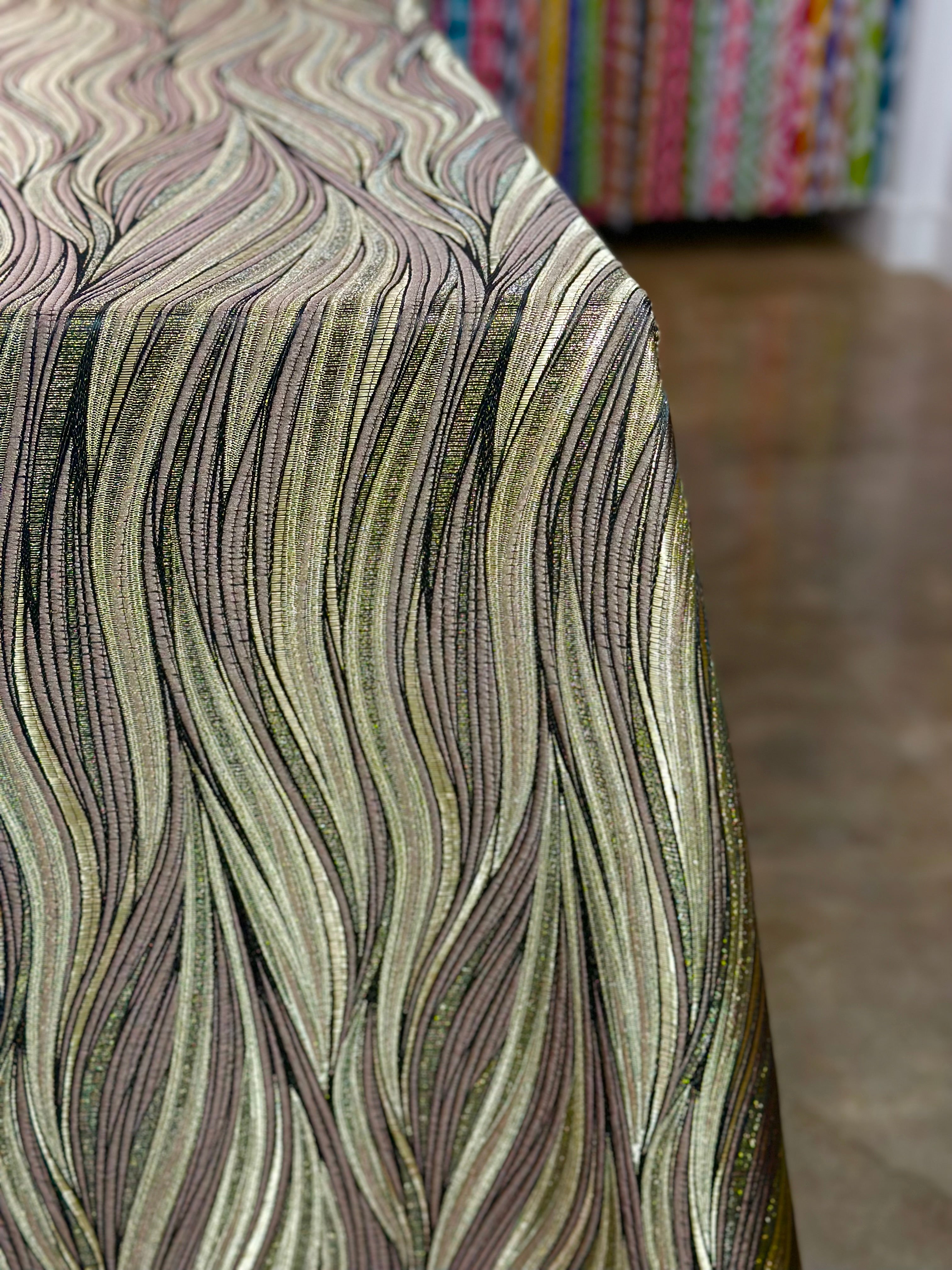 Leaf Hanging Taffeta Table Linen in Taupe and Gold