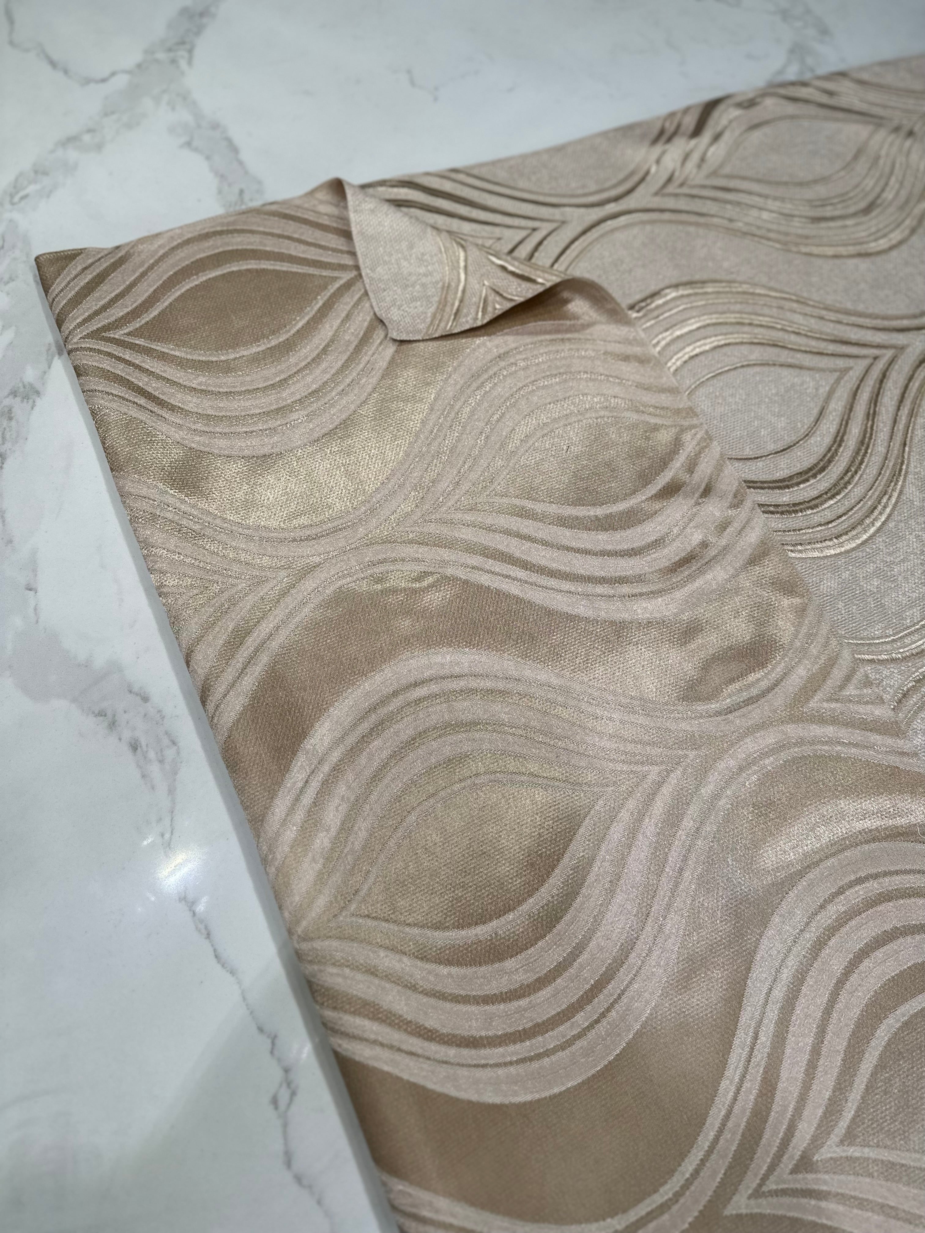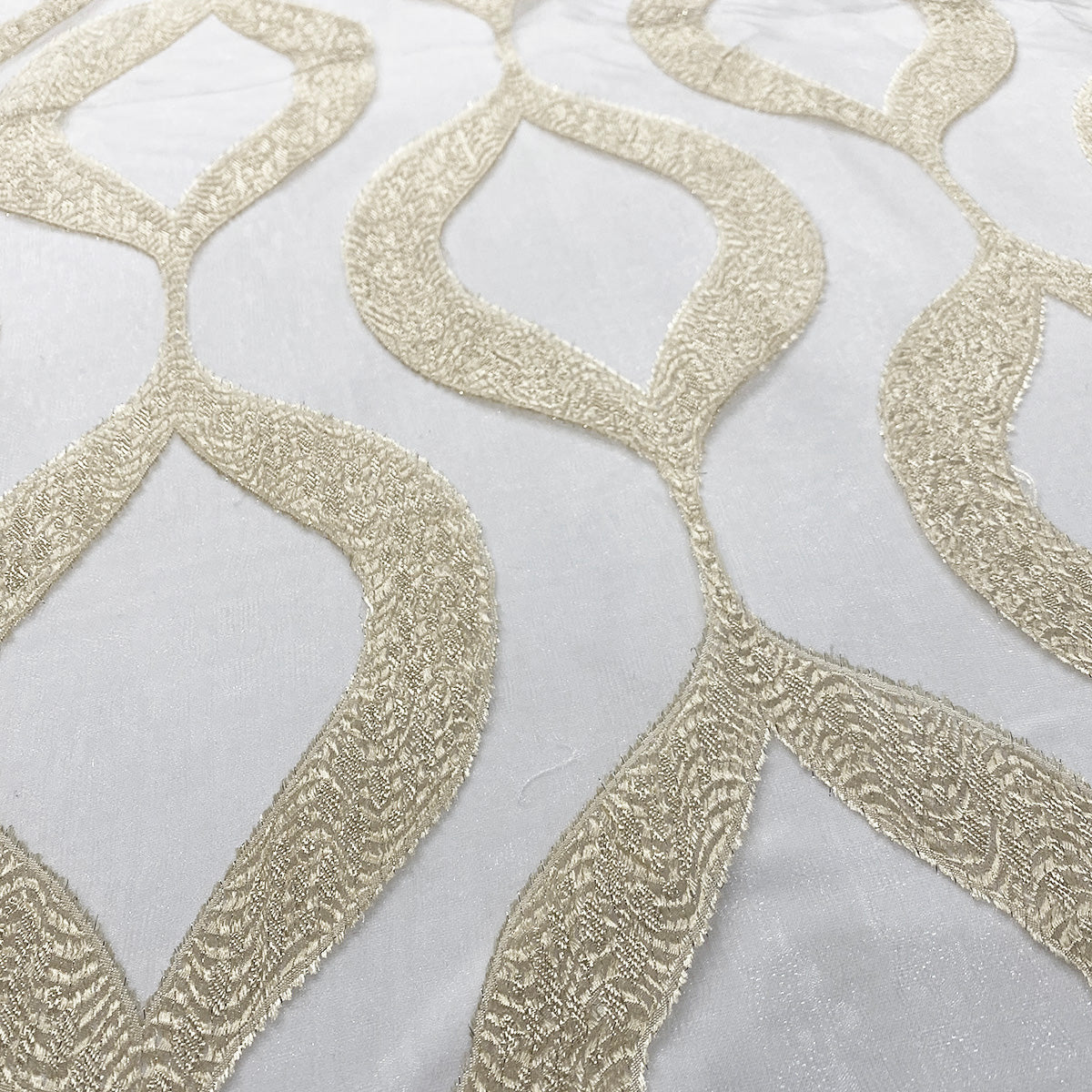 Contempo Scroll Sheer Table Linen in Champagne