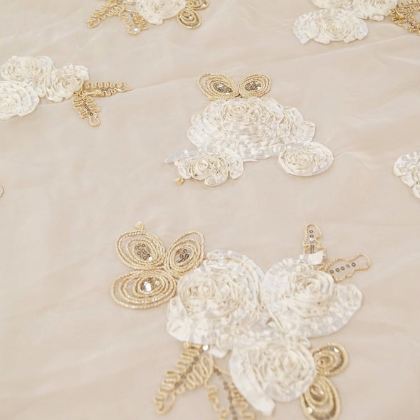 Daisy Sequins Table Linen in Champagne