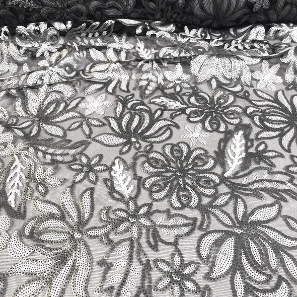 Fiori Leaf Sequins Table Linen in Silver
