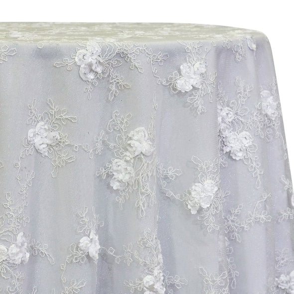 Rose Satin (3D) Table Linen in White