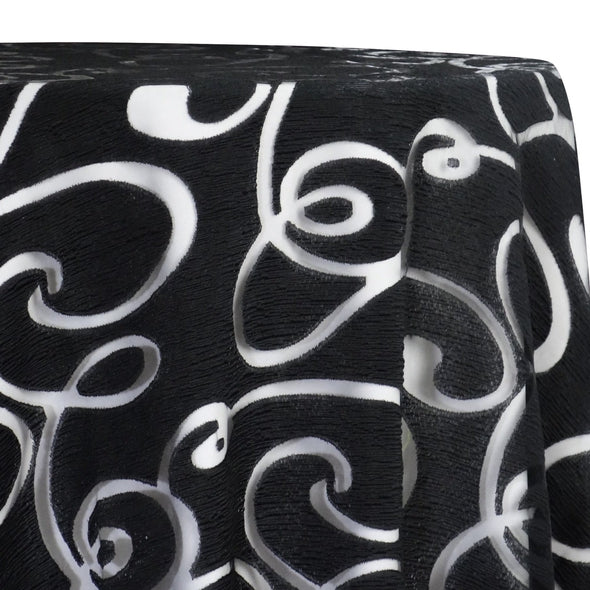Contempo Scroll Sheer Table Linen in Black