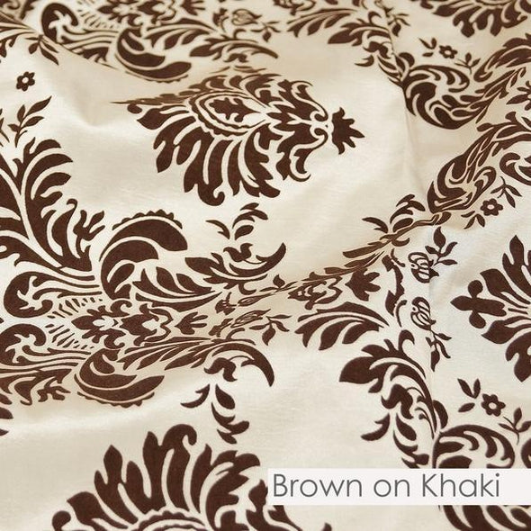 Damask Flocking Taffeta Table Runner in Brown on Khaki