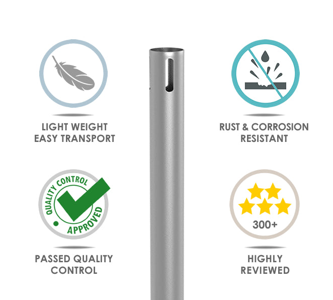 • 8' Tall (Break-Apart Style, 1.5" Diameter): Ships in two 4' sections for easier transport and storage while maintaining durability and stability. This is the most popular option due to its convenient breakdown feature.