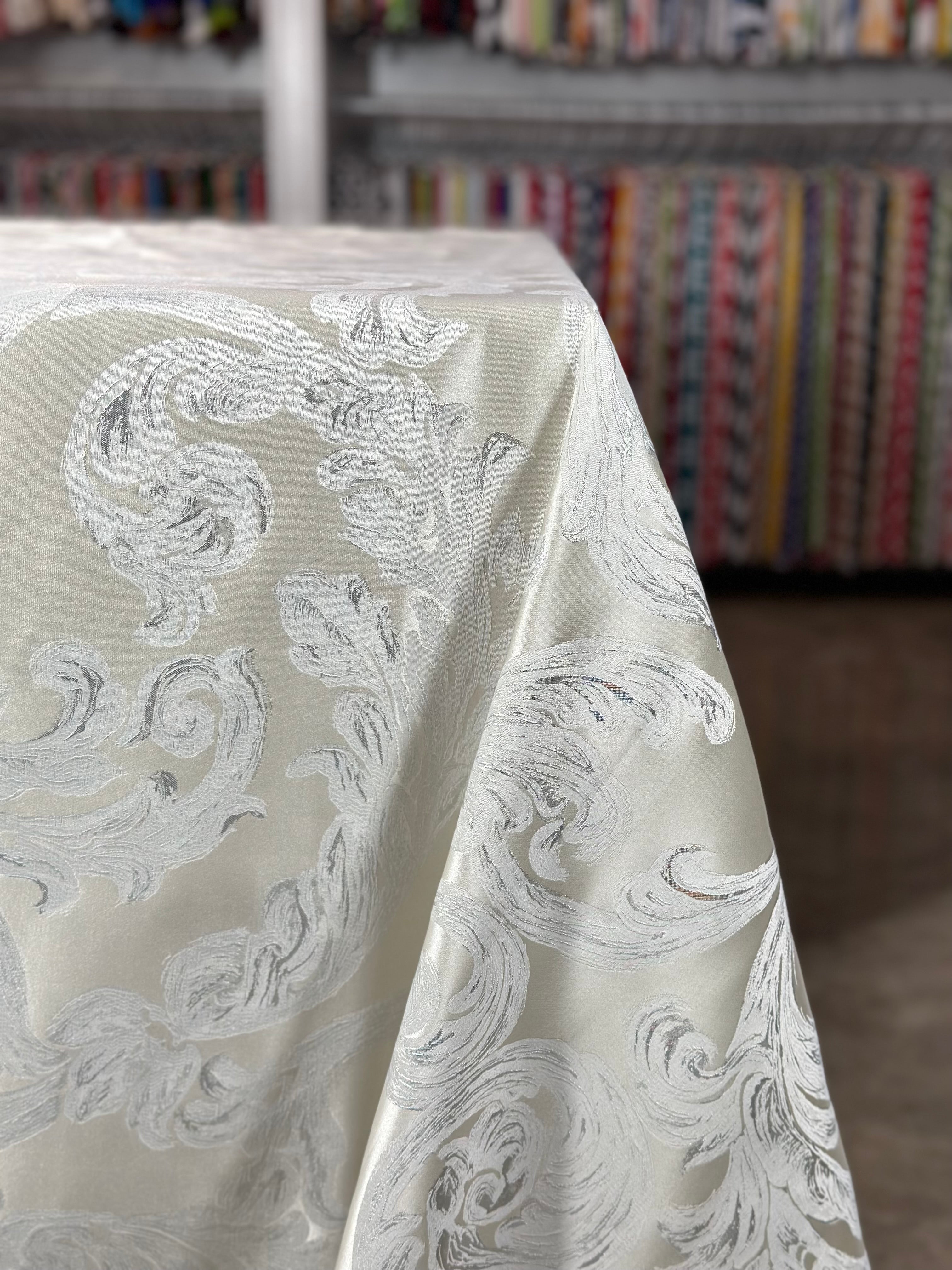Table linen sizes that exceed the width of the fabric will have seams. All seams are sewn with 5 thread overlock sergers for long lasting durability.
