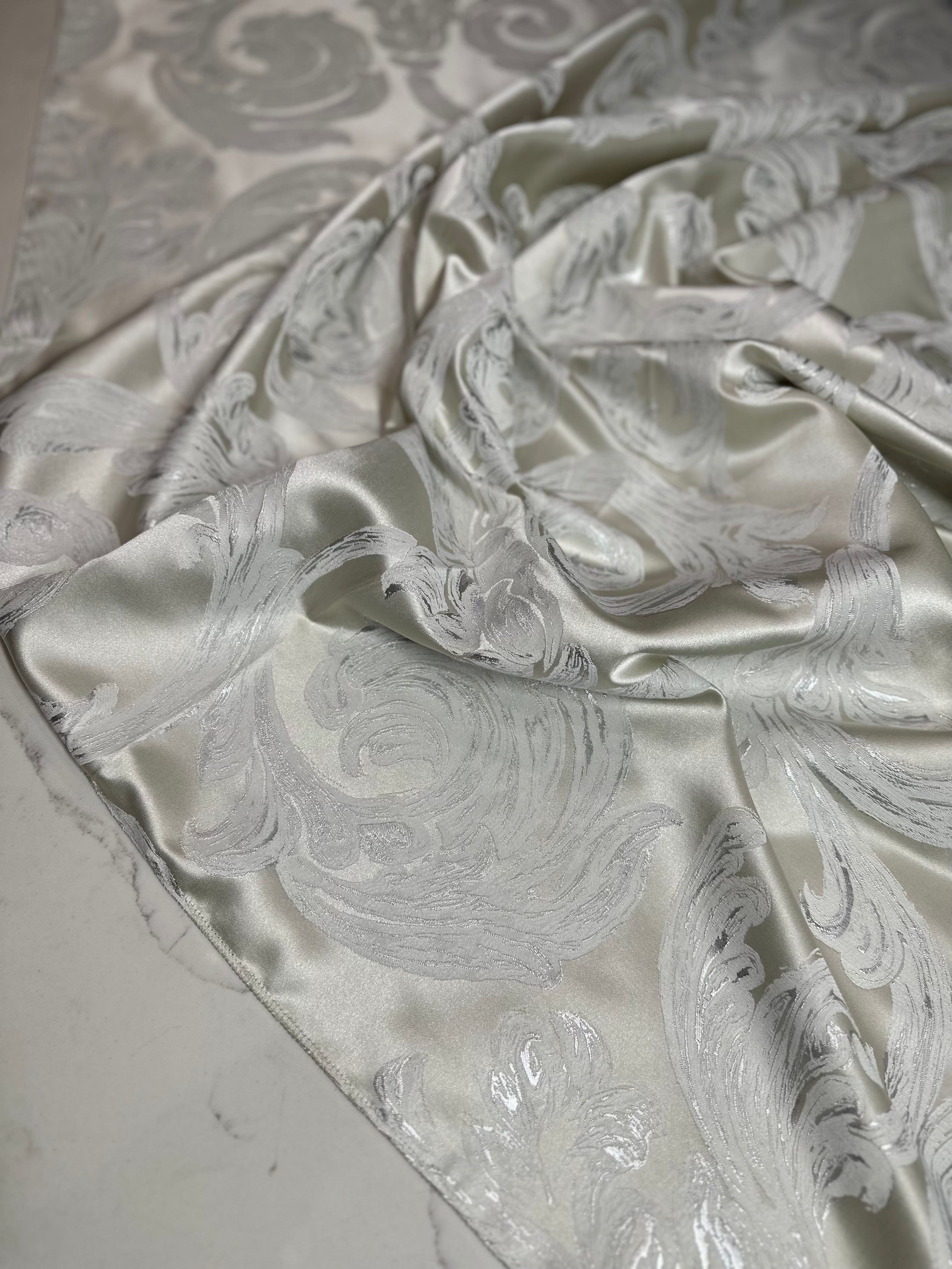 Fabric Collection: This fabric has a polyester base with metallic embroidered design in our "Florence" pattern and has a multi tone color throughout.