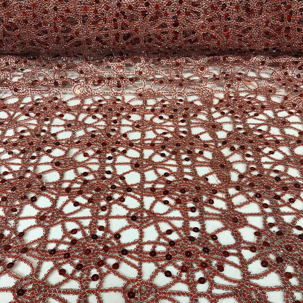 Flower Chain Lace Wholesale Fabric in Red and Silver