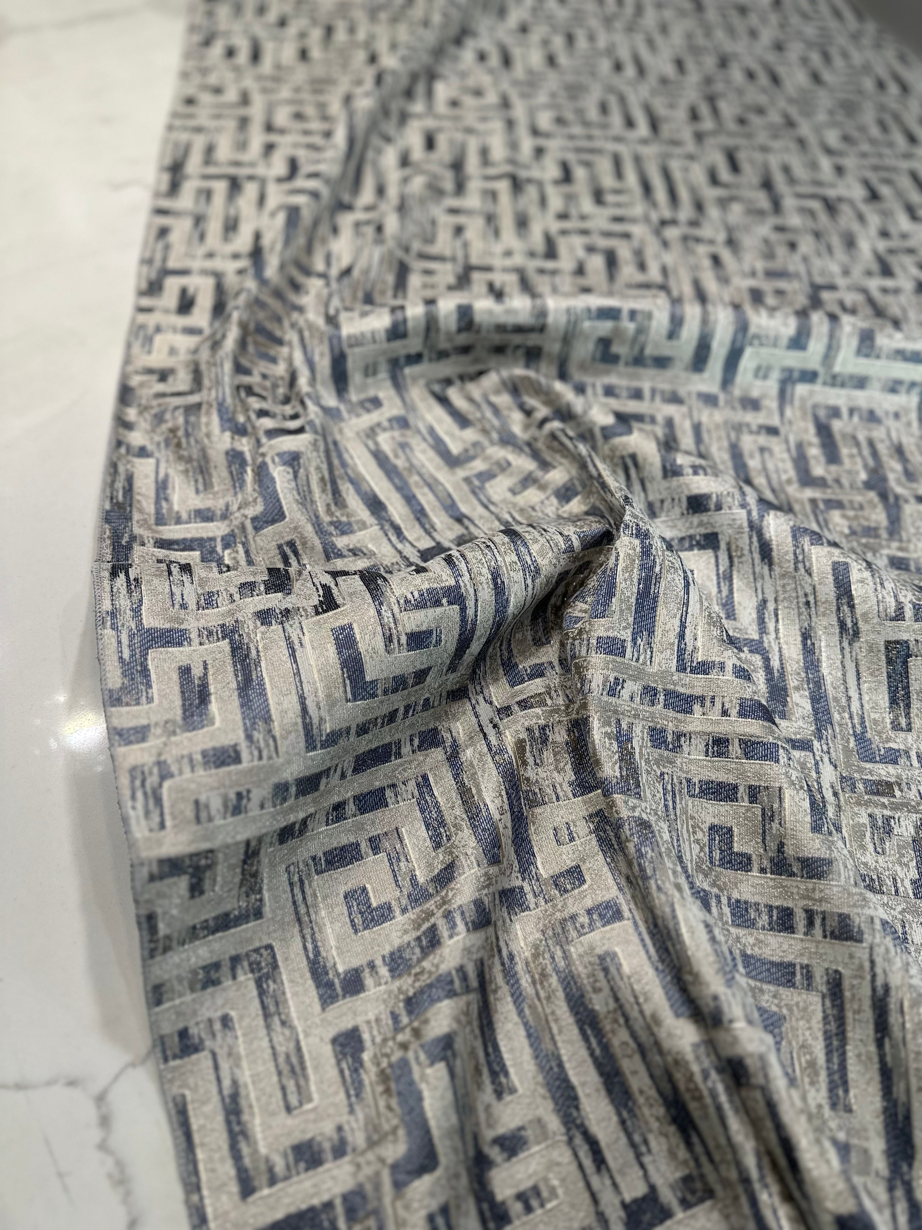 Fabric Collection: This fabric is a Jacquard material with a metallic geometric embroidered design throughout.