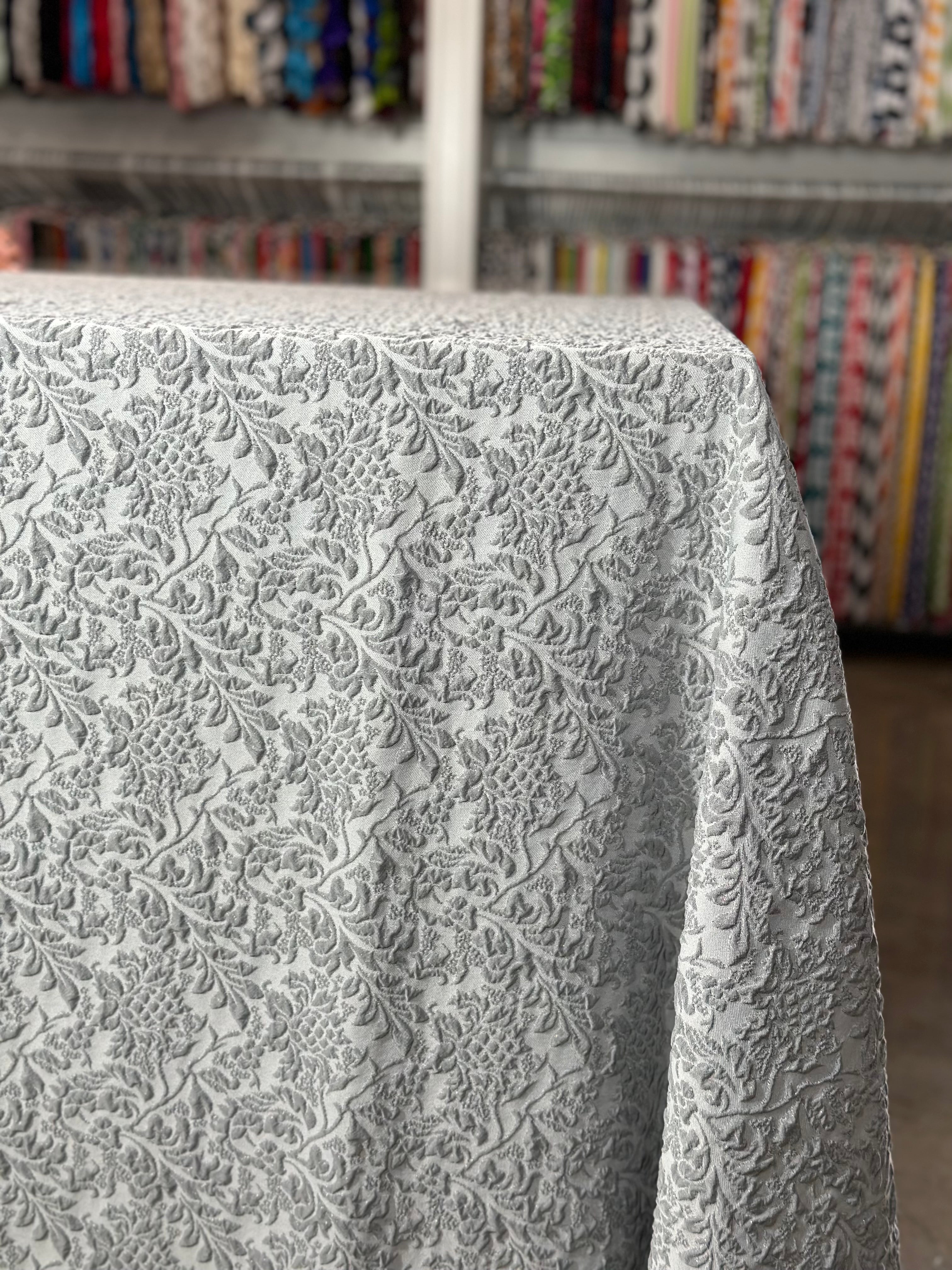 Lucia Jacquard Table Linen in Silver
