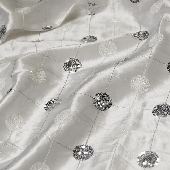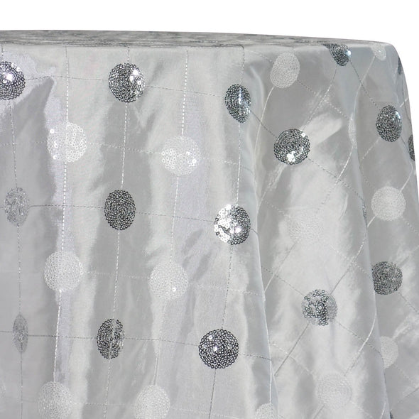 Luna Sequins Taffeta Table Linen in Silver on White