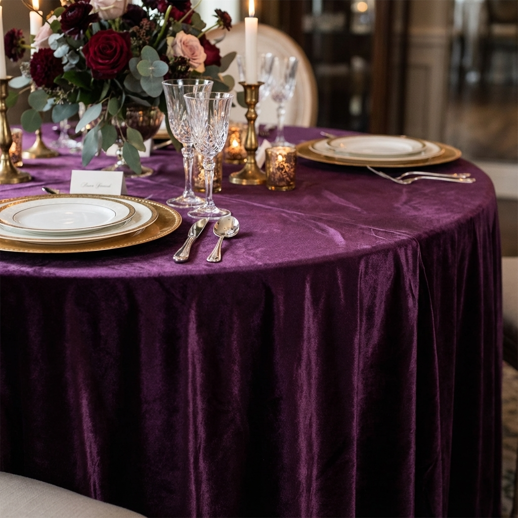 Luxury Plush Velvet Table Linen in Plum