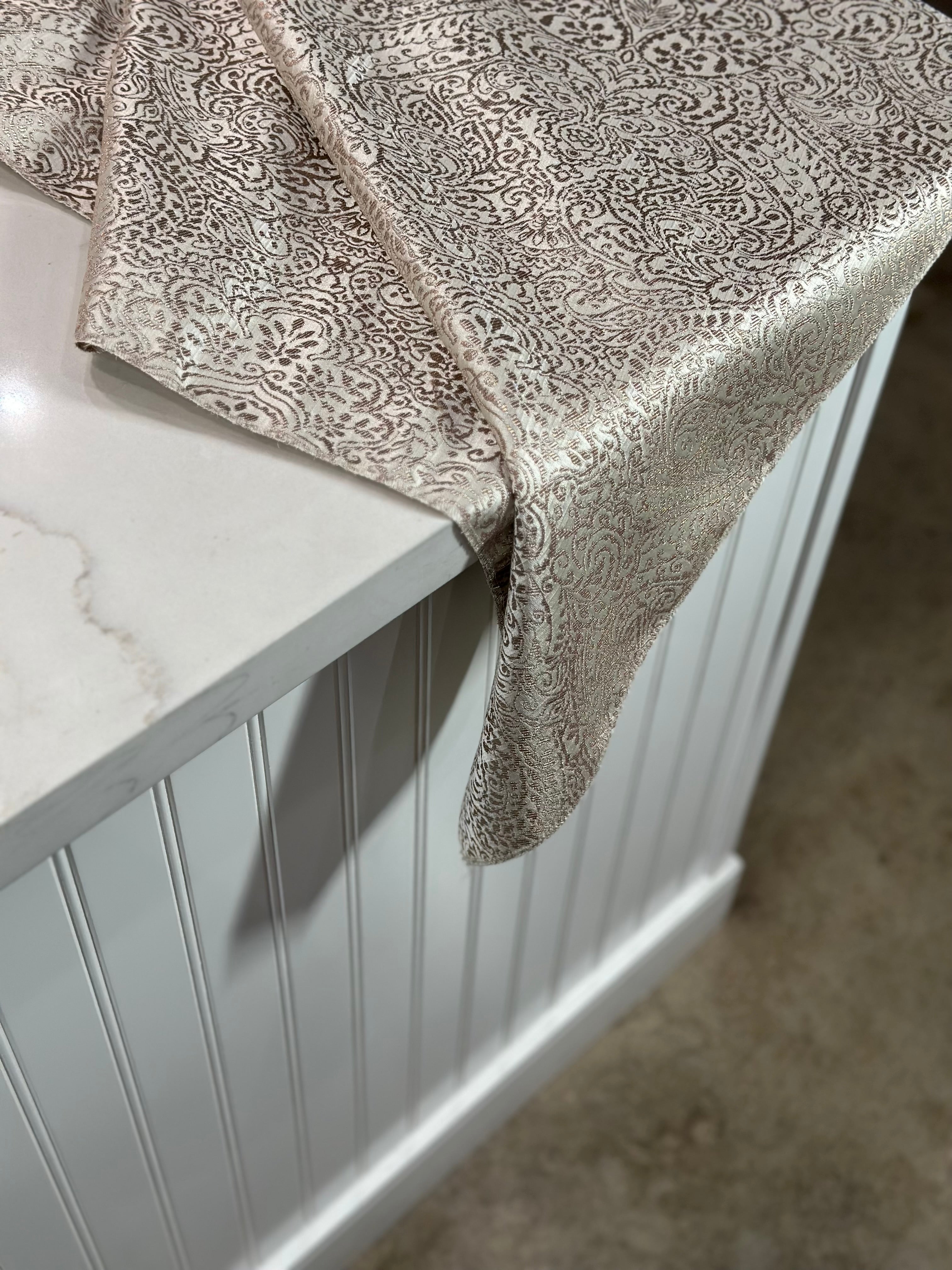 Table linen sizes that exceed the width of the fabric will have seams. All seams are sewn with 5 thread overlock sergers for long lasting durability.